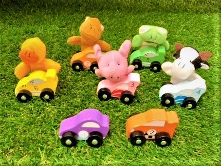 みんなも自分の好きな色のミニカーを選んで走らせてみよう!