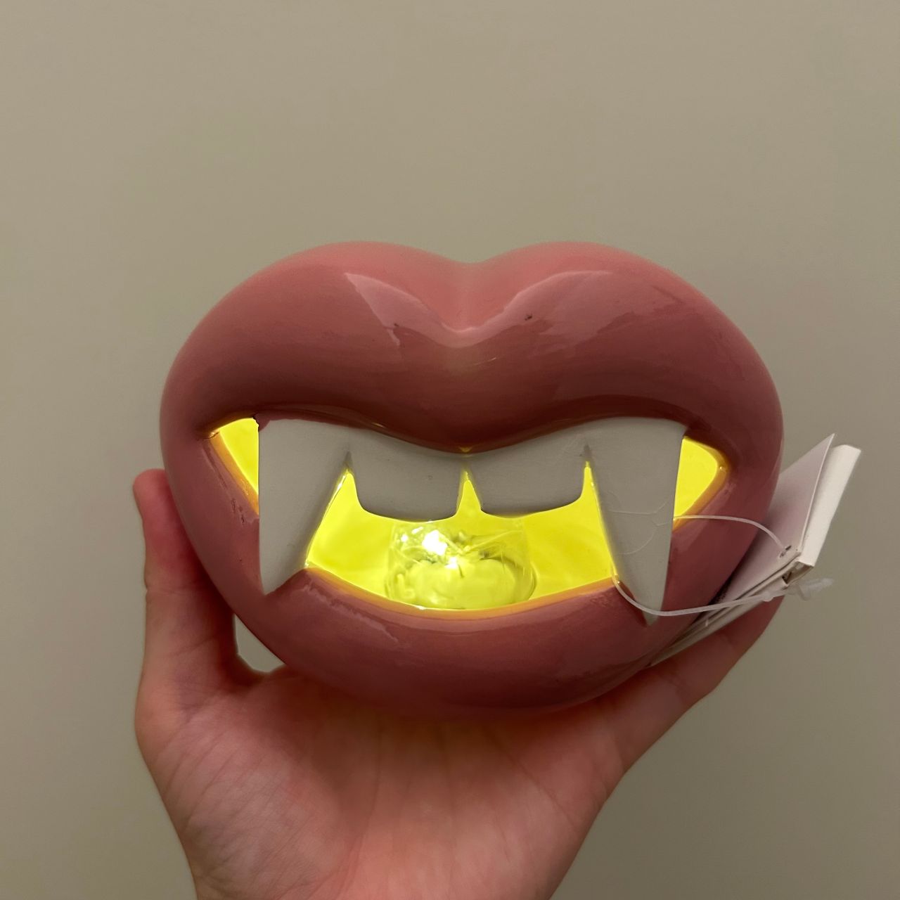 暗闇でピンクリップにギラリと光るキバ…!