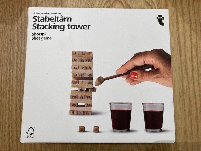 順番にブロックを倒していって、倒した方が罰ゲームとして付属のグラスにお酒を注いでショット!!
