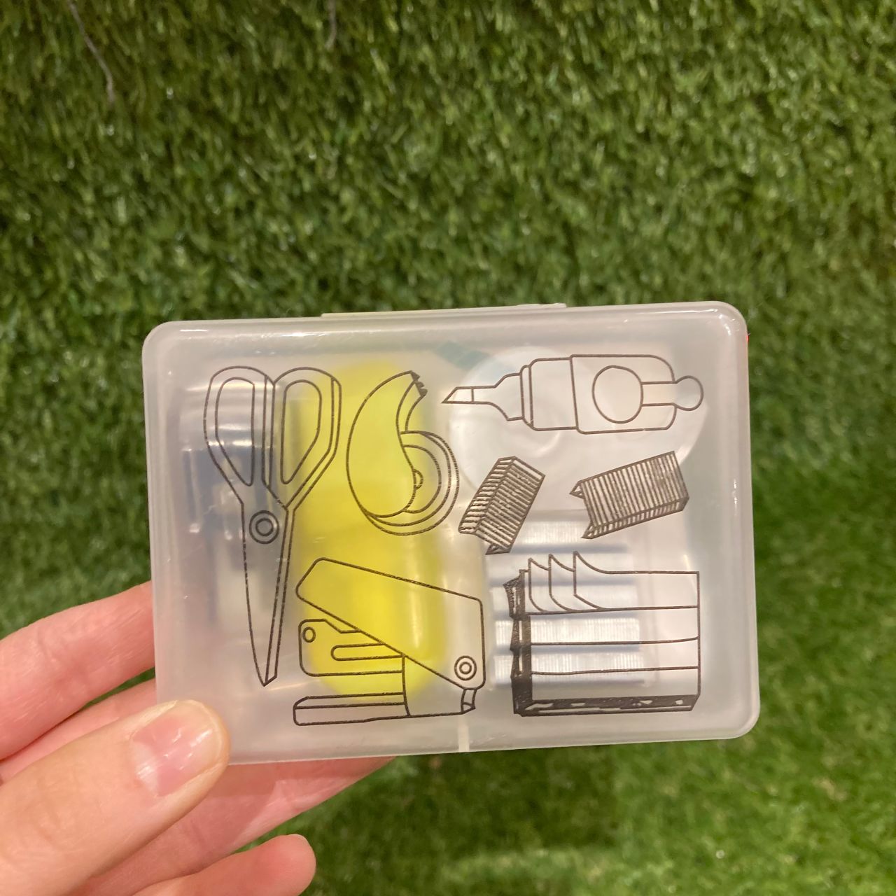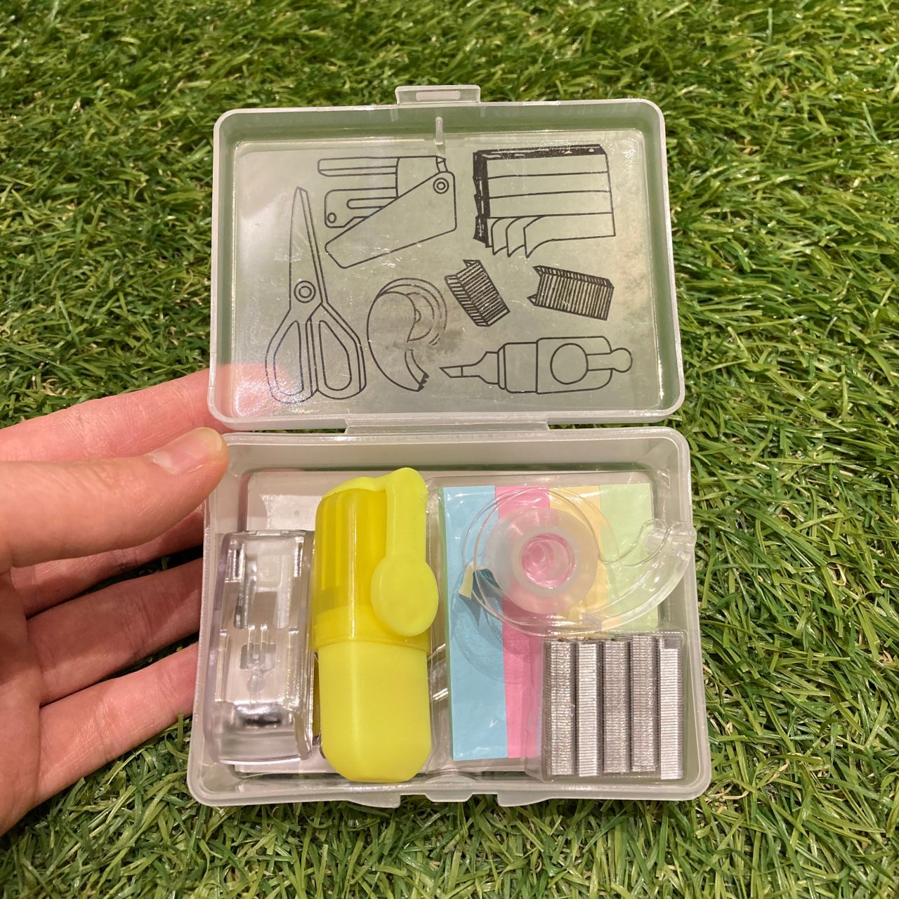 蛍光ペン、ホッチキス、芯、付箋、ハサミ、セロテープがセットになって入っています!