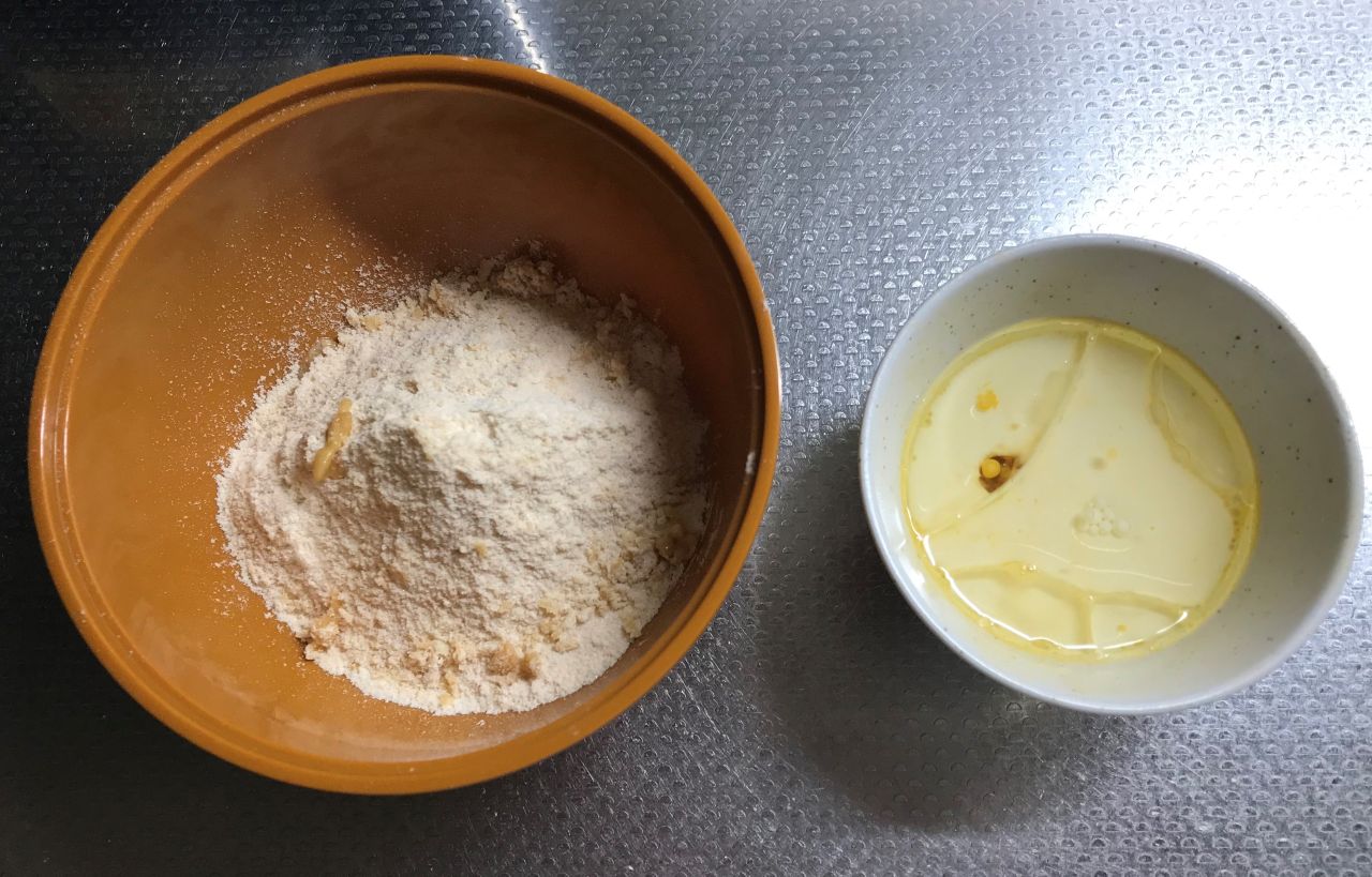 まずはキットに記載されている要領で、マフィンミックス粉と牛乳・卵液を