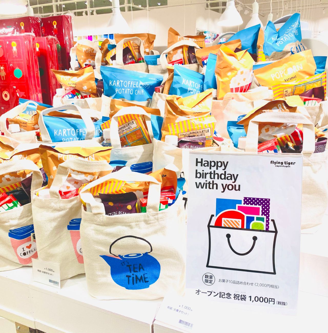 人気のお菓子約\2000-円相当分をお買い得なセットにしたオープン記念福袋=祝袋を