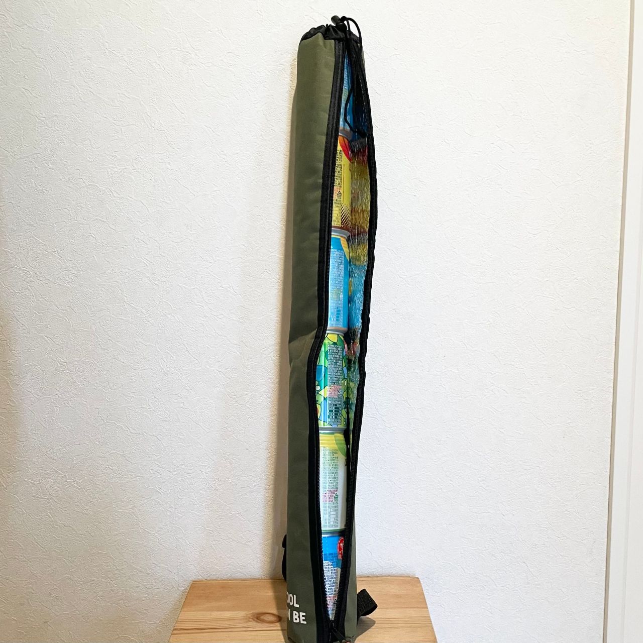 この縦長の珍しいフォルムのクーラーバック‼︎ なんと6缶も入り、