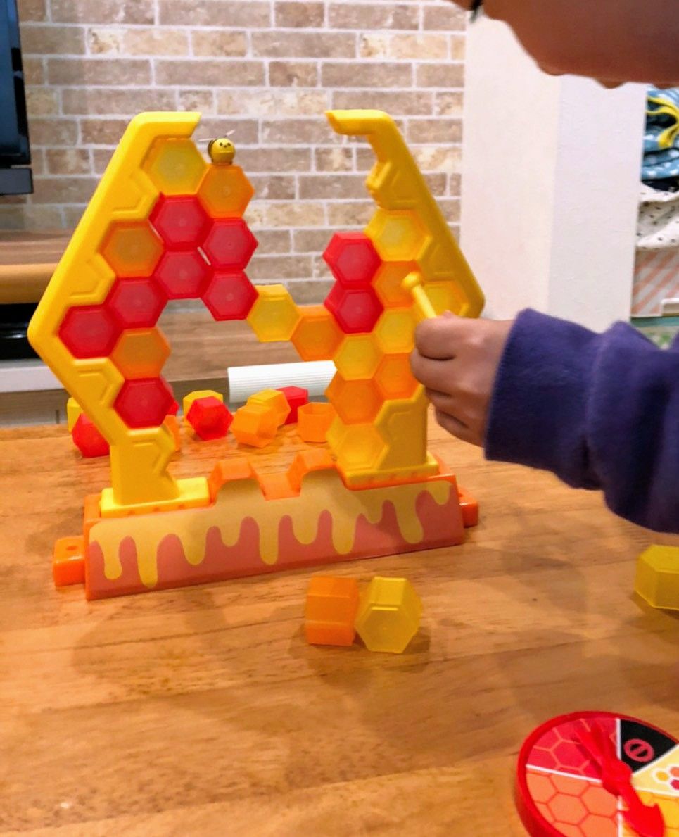 ブロックを付属のスティックで順番に一つずつ落としていきます!