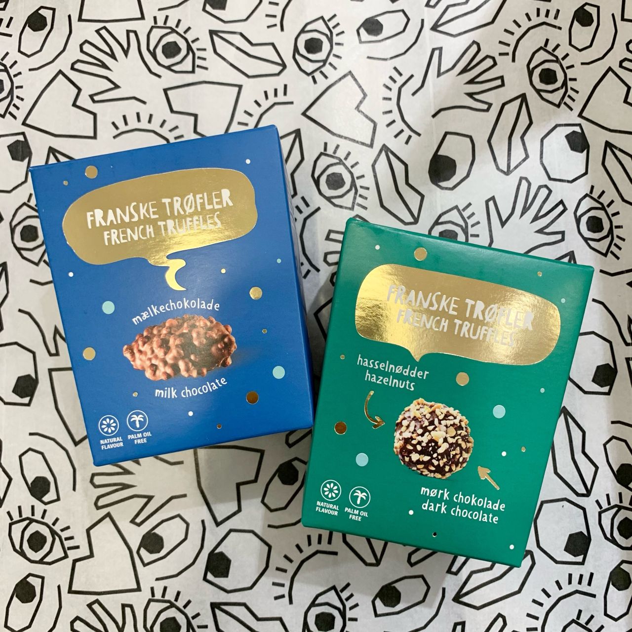 緑の箱は周りにヘーゼルナッツがついたダークチョコレート。