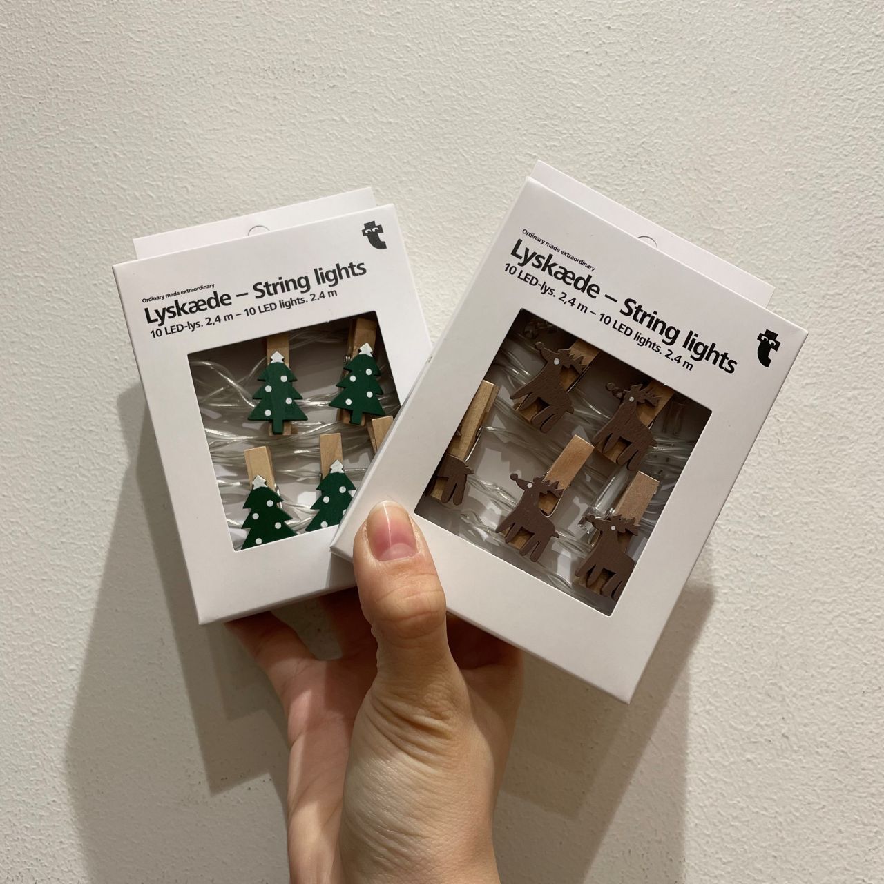 こちらはツリーのクリップとトナカイのクリップがついたライトチェーン♪