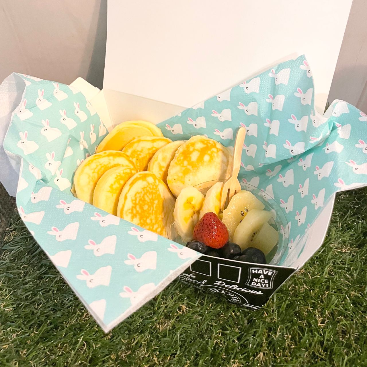 ミニパンケーキをランチボックスにつめてお出かけ♡