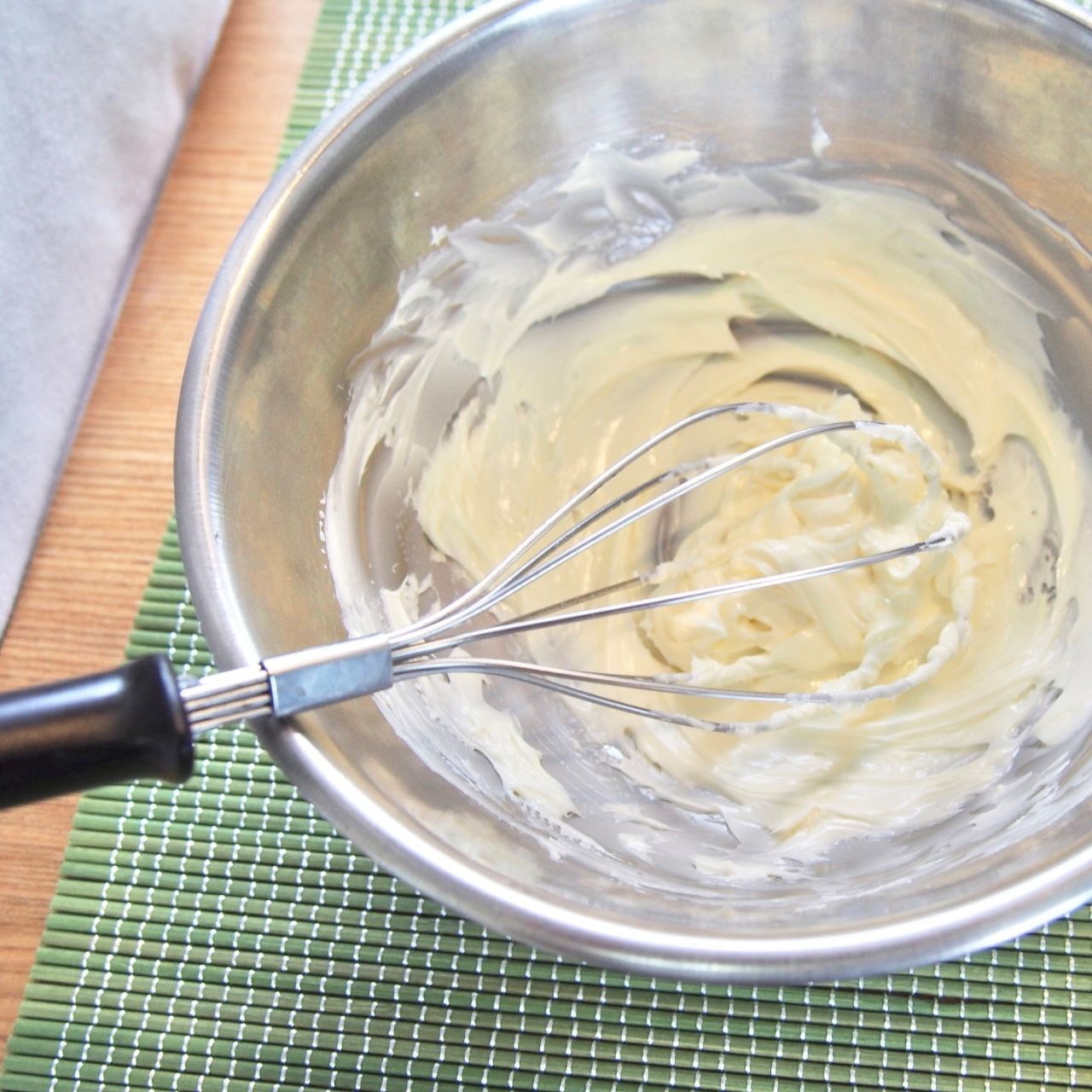 ② ①に牛乳、溶いた卵、マフィンミックスを加え