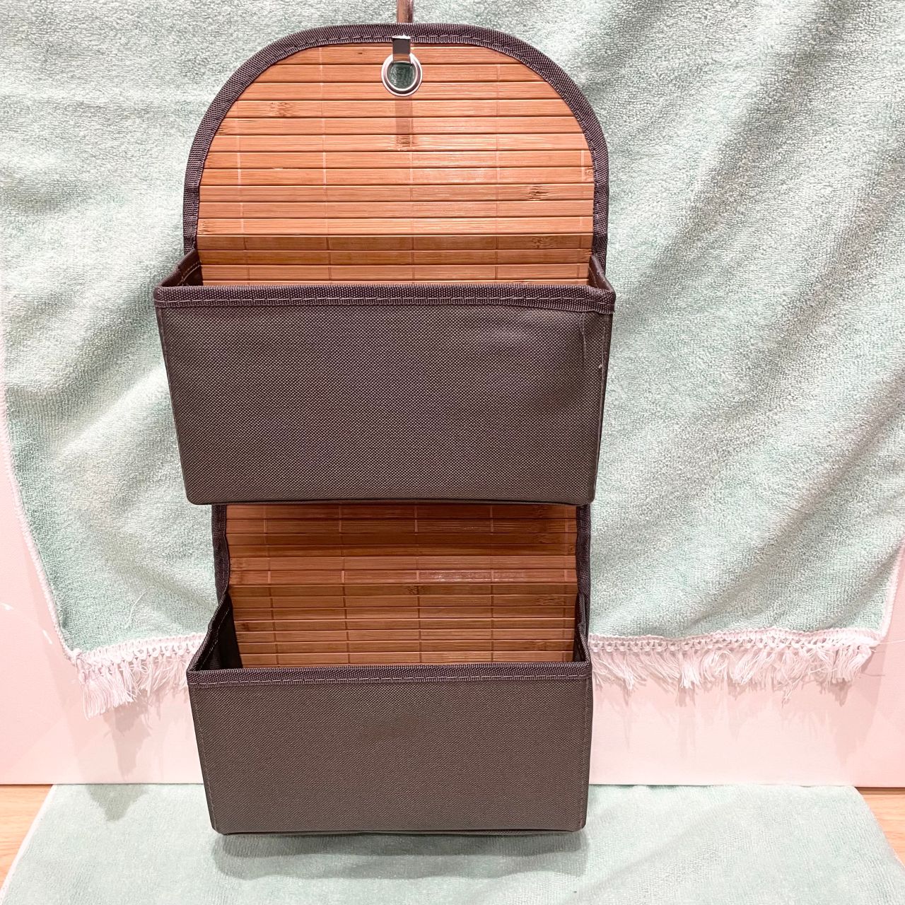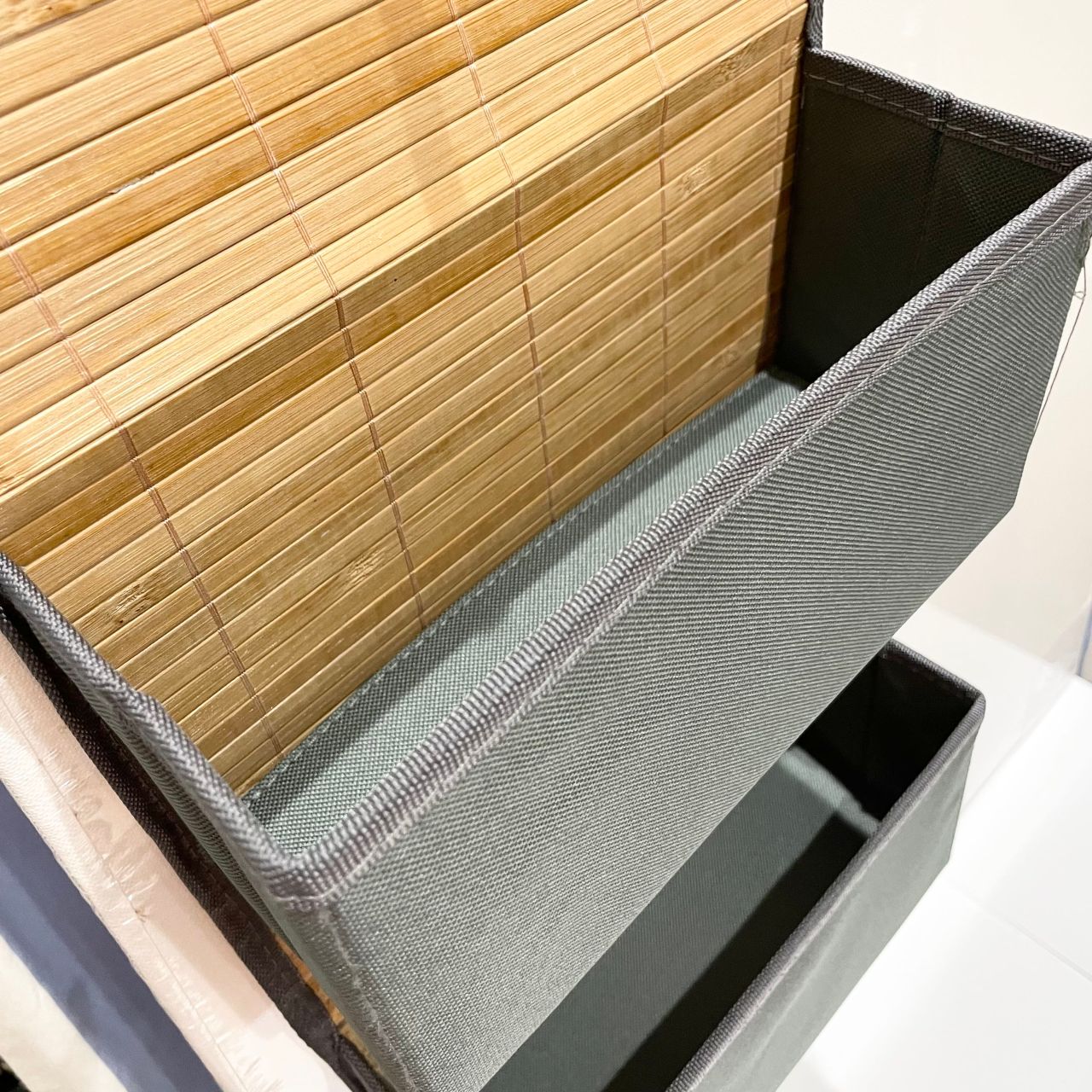 バンブーで爽やかさアップな収納アイテム‼︎ マチもしっかりあるので収納力もあり、ドアにかけられるフックつきで