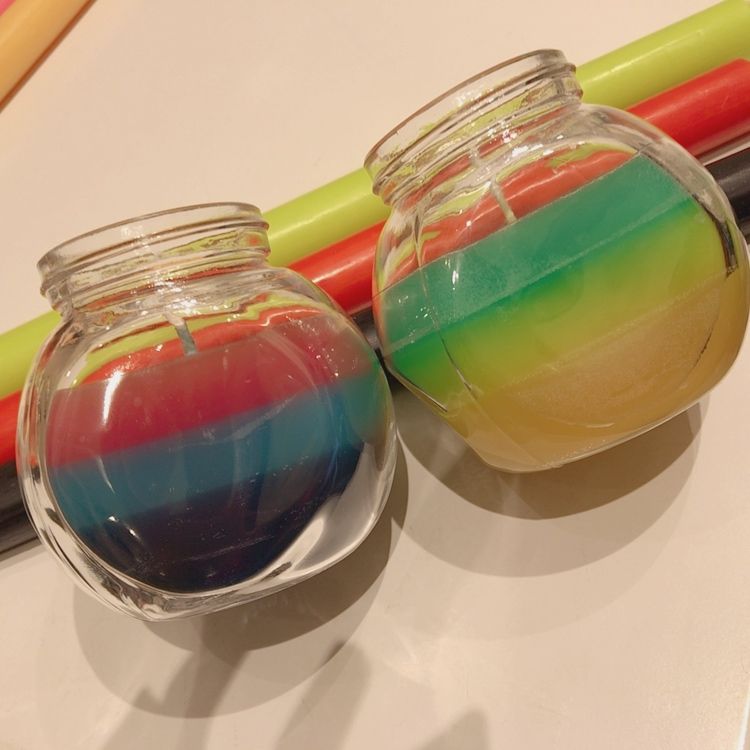 ⑥注いだロウソクが冷めるのを待ち、④~⑤の工程を色の個数だけ繰り返して行きます。