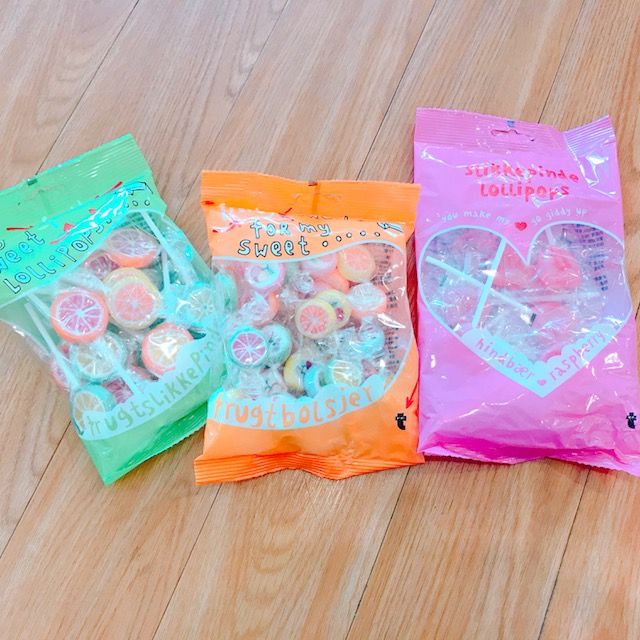 左、3種類の柑橘類のフレイバーの入ったロリポップ