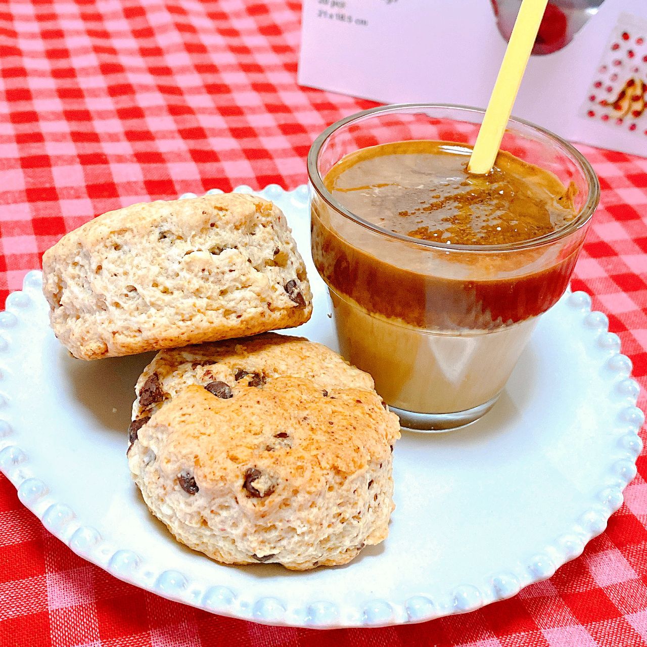 切りコップに入れた牛乳の上にのせたら、