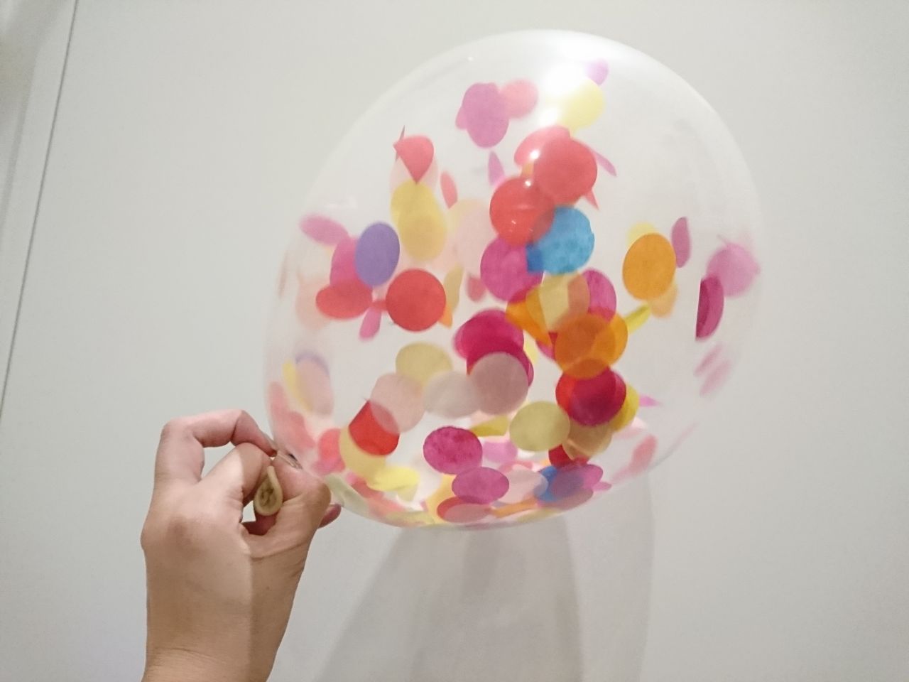 最後に風船を割ると、コンフェティも出てきて綺麗ですよ☆