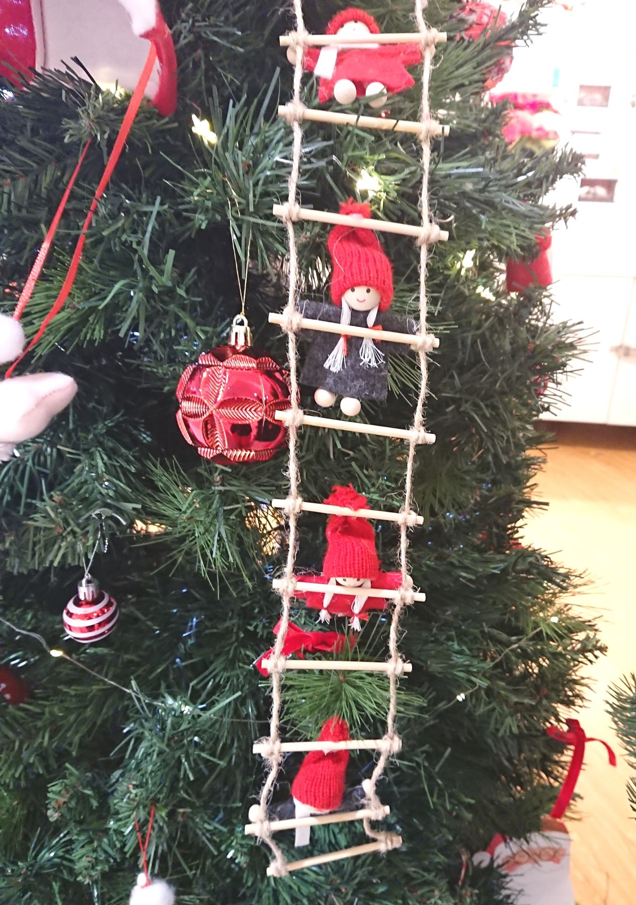 サンタの飾りは木製。