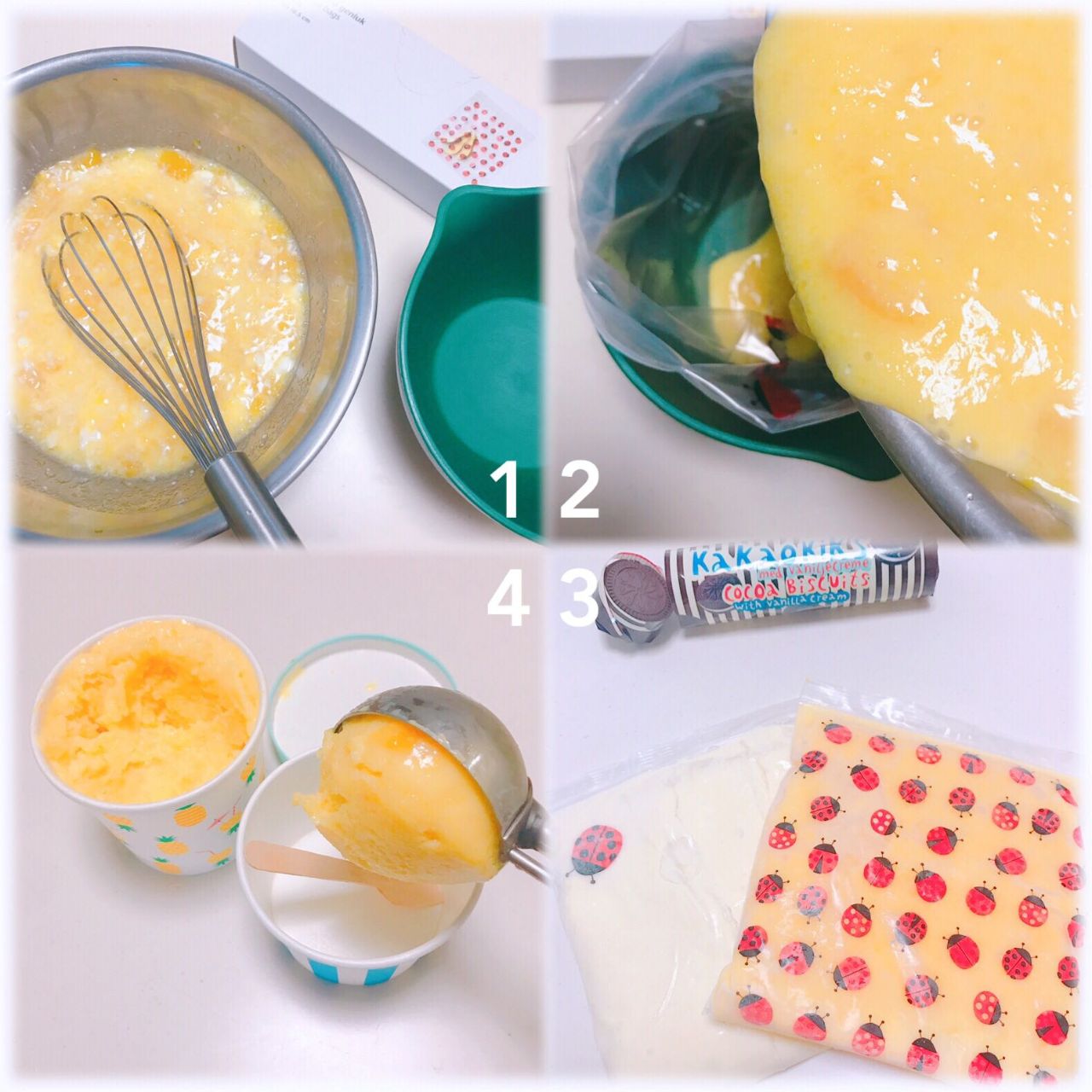 4 最後に保存容器に入れ替えて再び冷凍庫で冷やし固めたらできあがりです