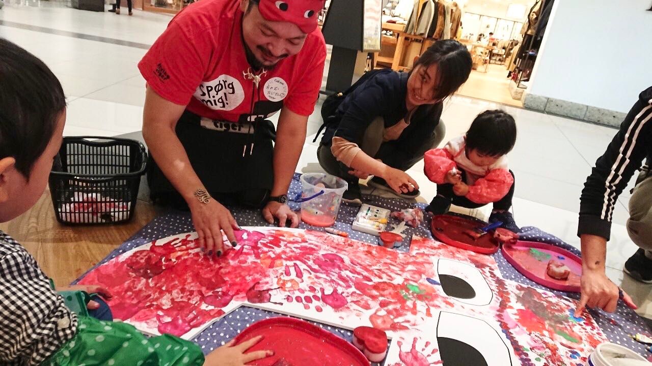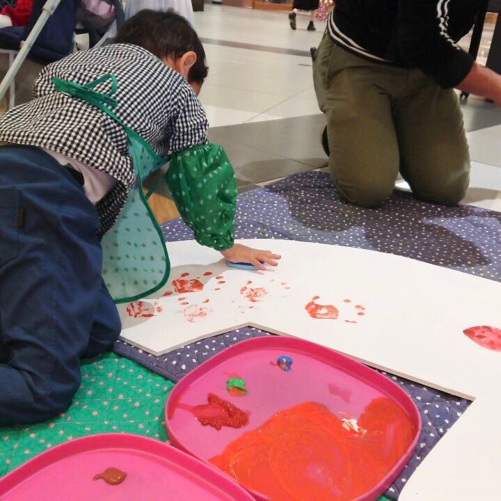 みんなで一緒に手形アートをつくる