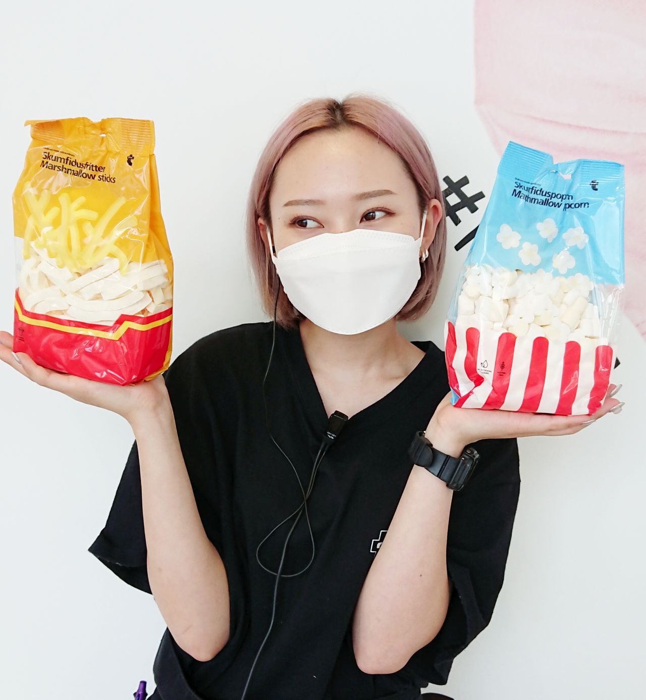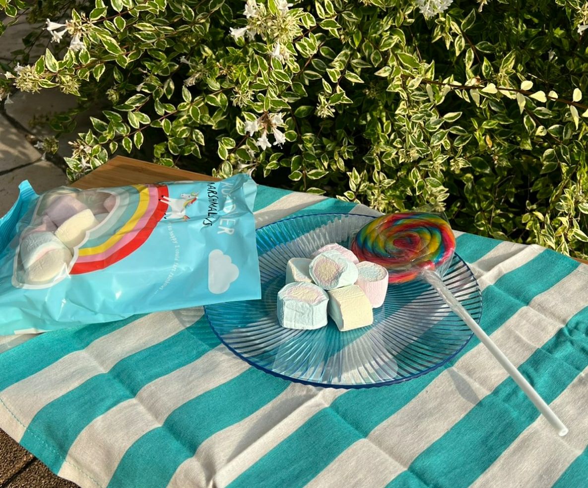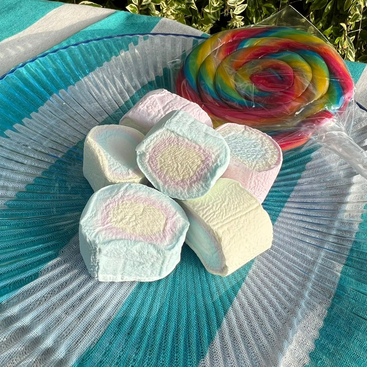 ピンクにイエロー、ブルーのかわいいカラーのマシュマロ。