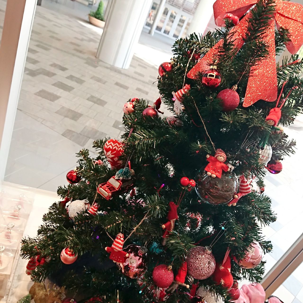 ウィンドウの小さいツリーは赤メインの子供っぽく!