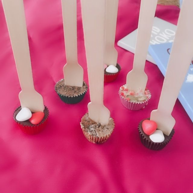 ハートのチョコレートや茶葉やスパイスをトッピングし