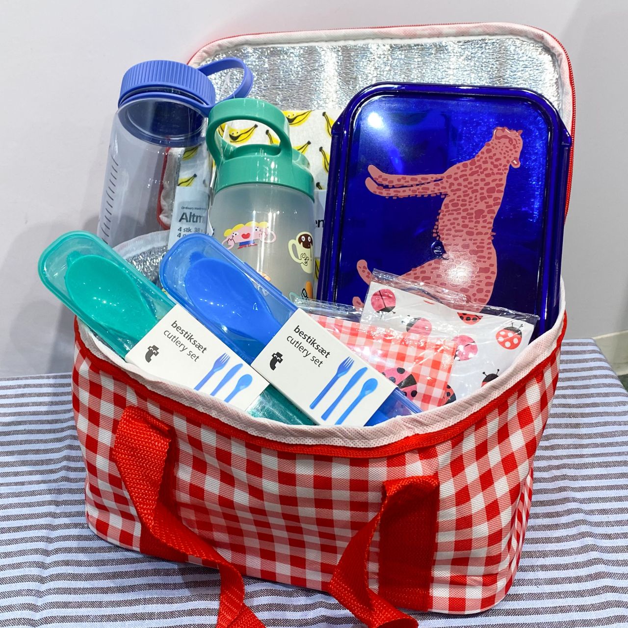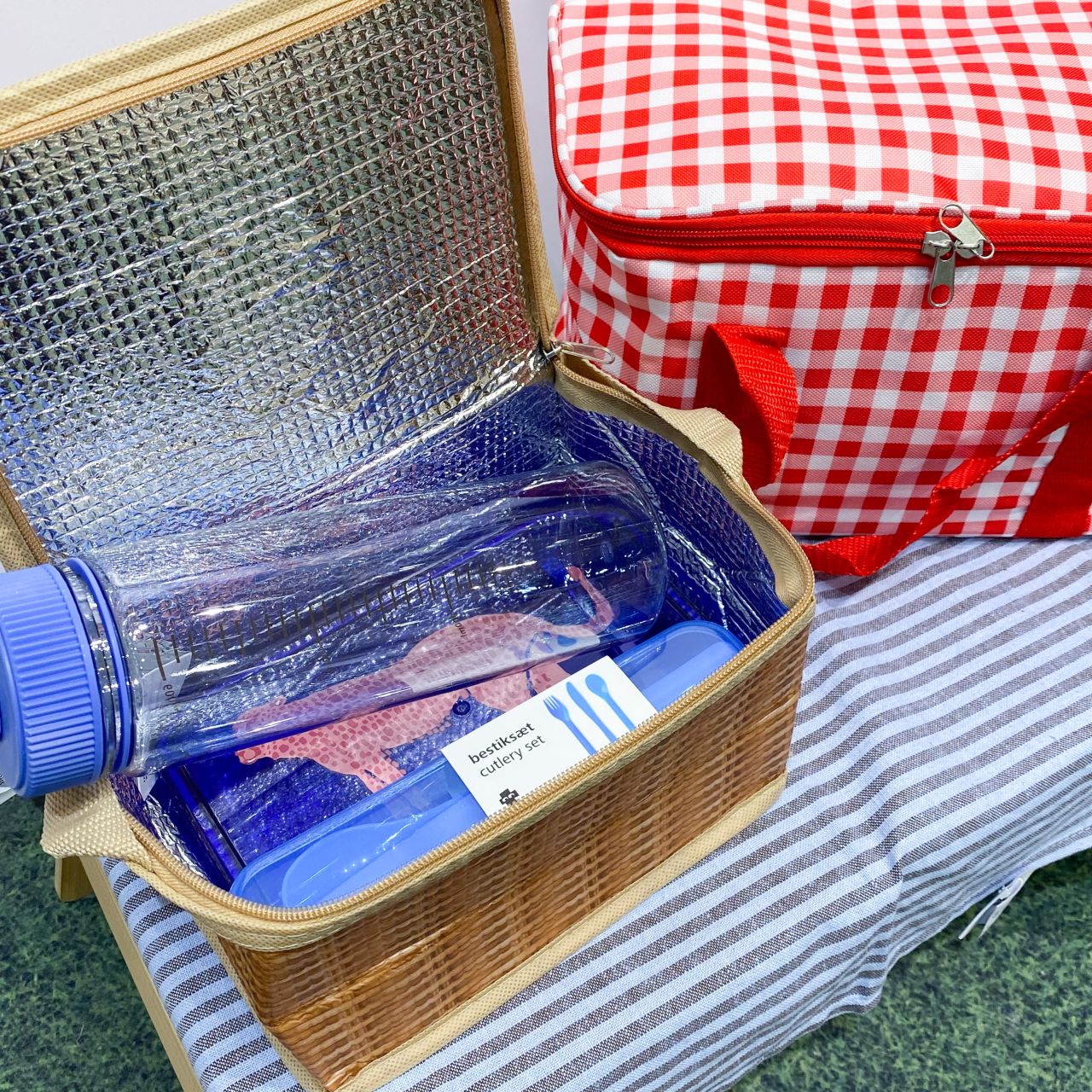 左:保冷バッグ カゴ柄 450円(税込495円)
