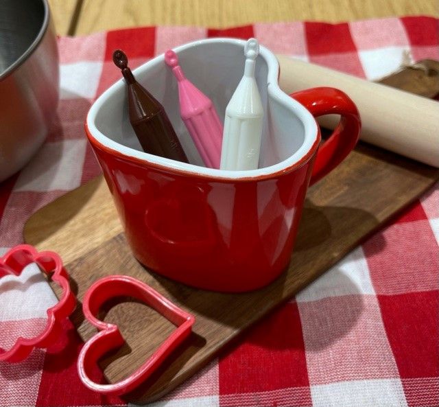 チョコレートペンを湯煎すると書きやすくなりますよ!!