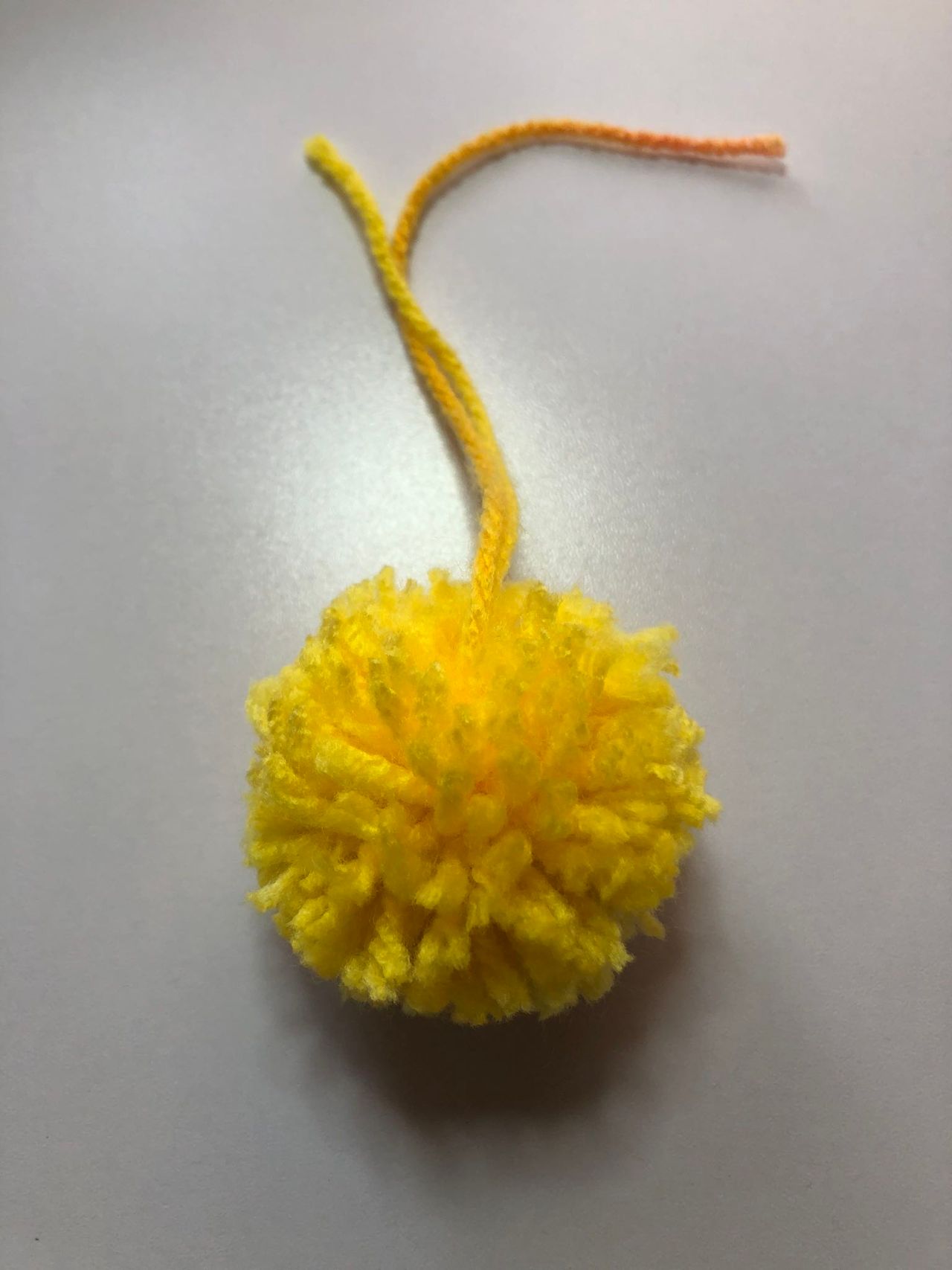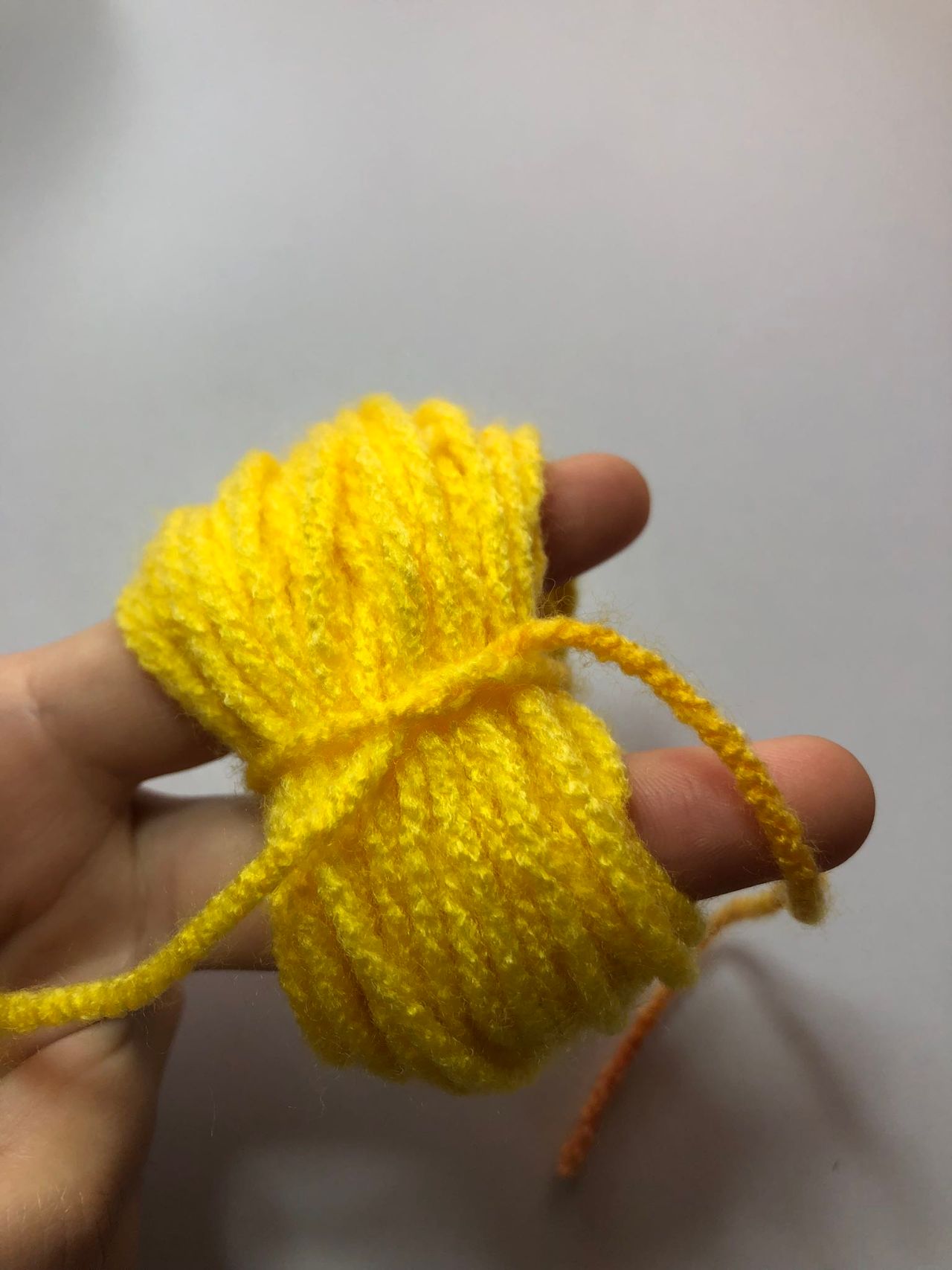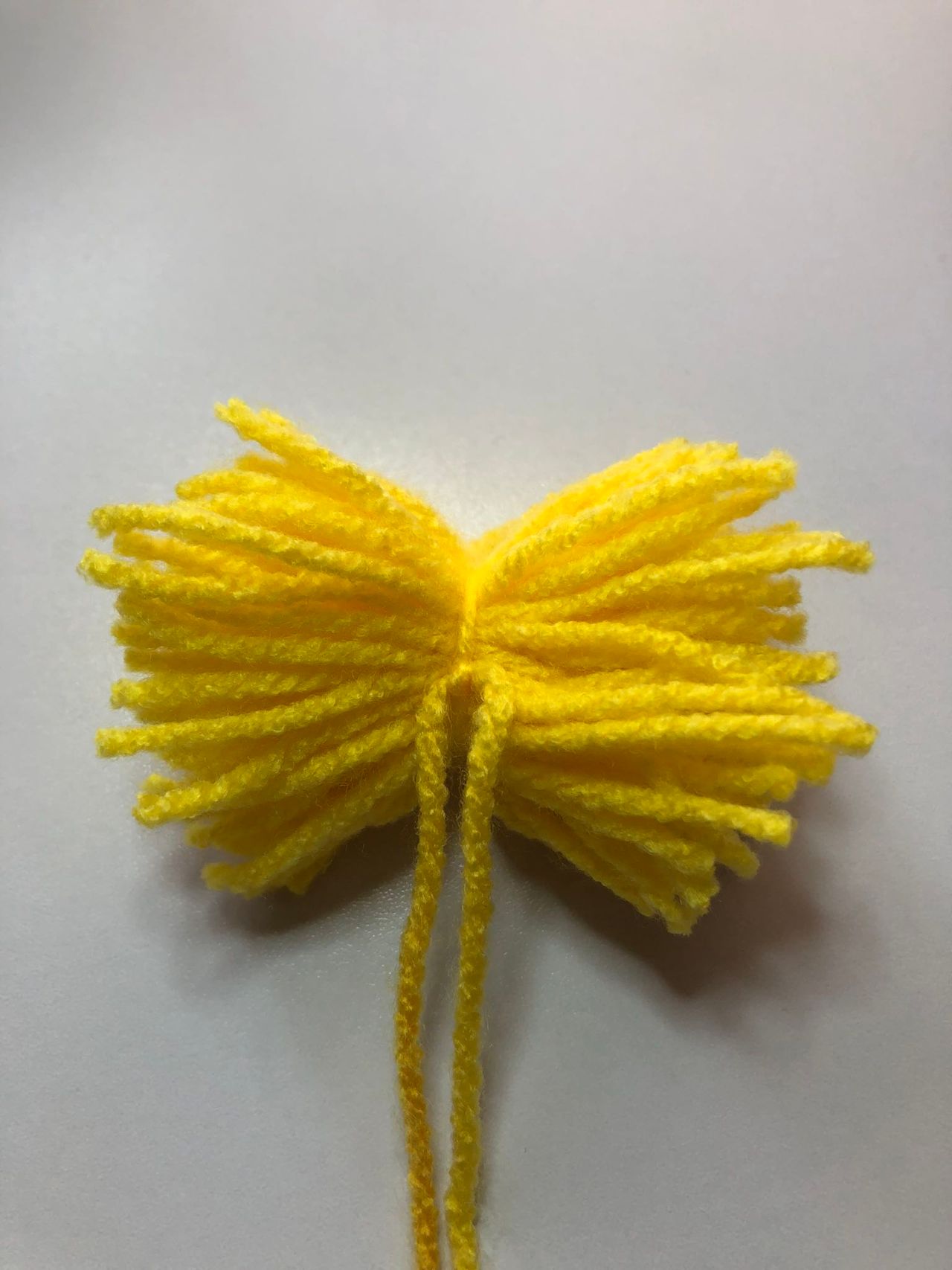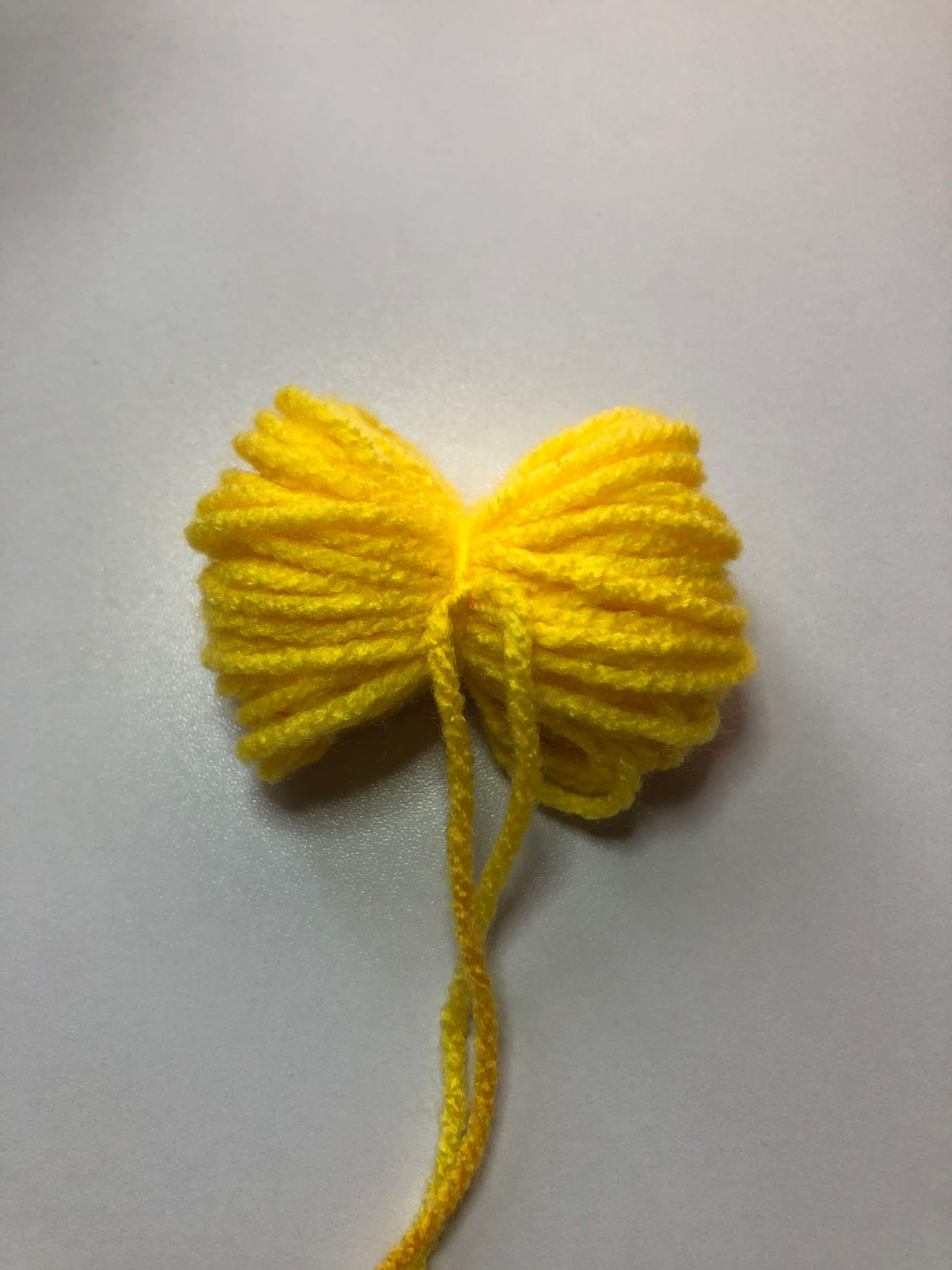 巻けたら毛糸を切り新しく10cm程の毛糸を用意し巻いてある毛糸を束ねましょう!