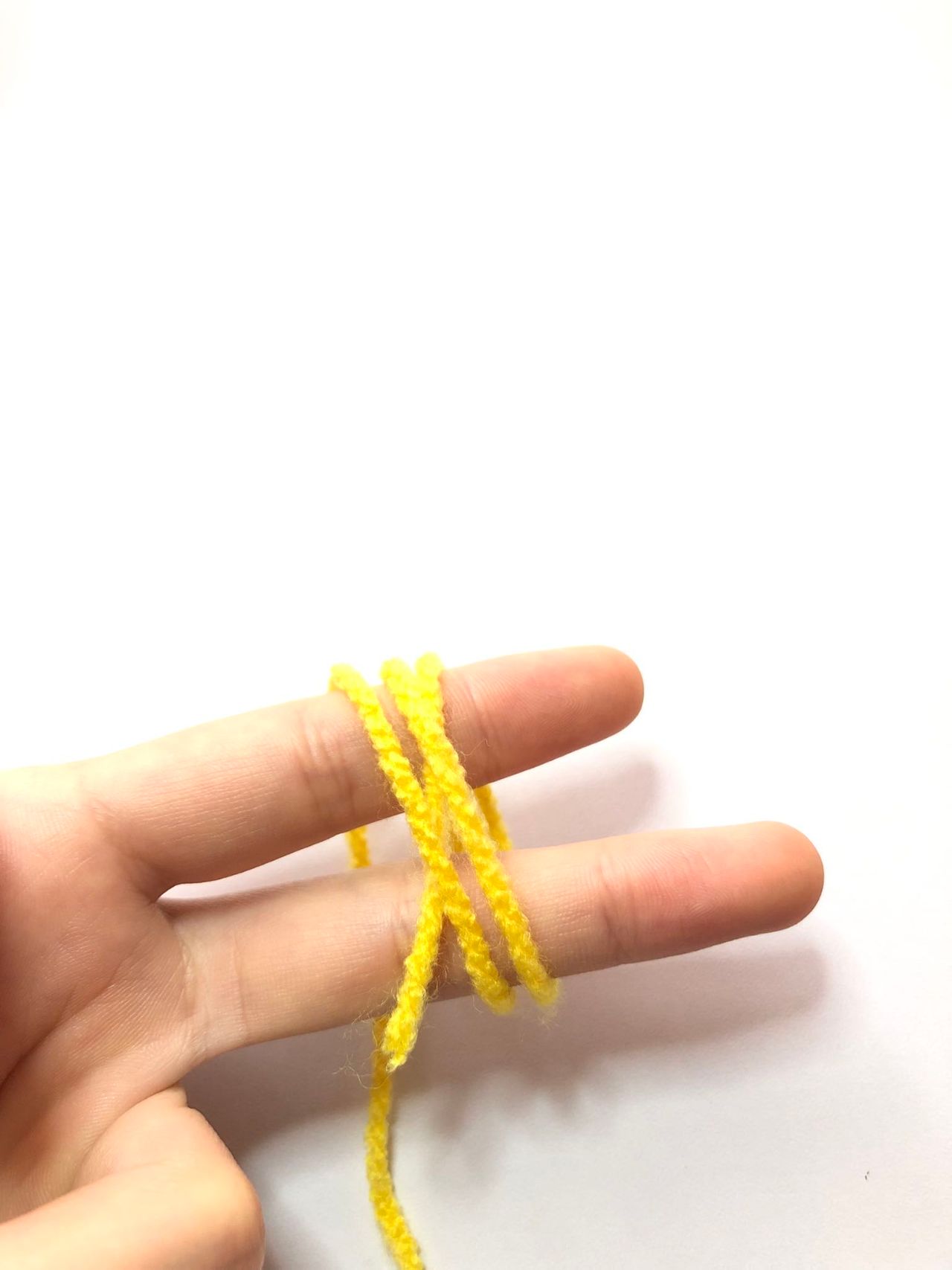 指の間から毛糸を通してを上と下で同じ方向に持っていきます!