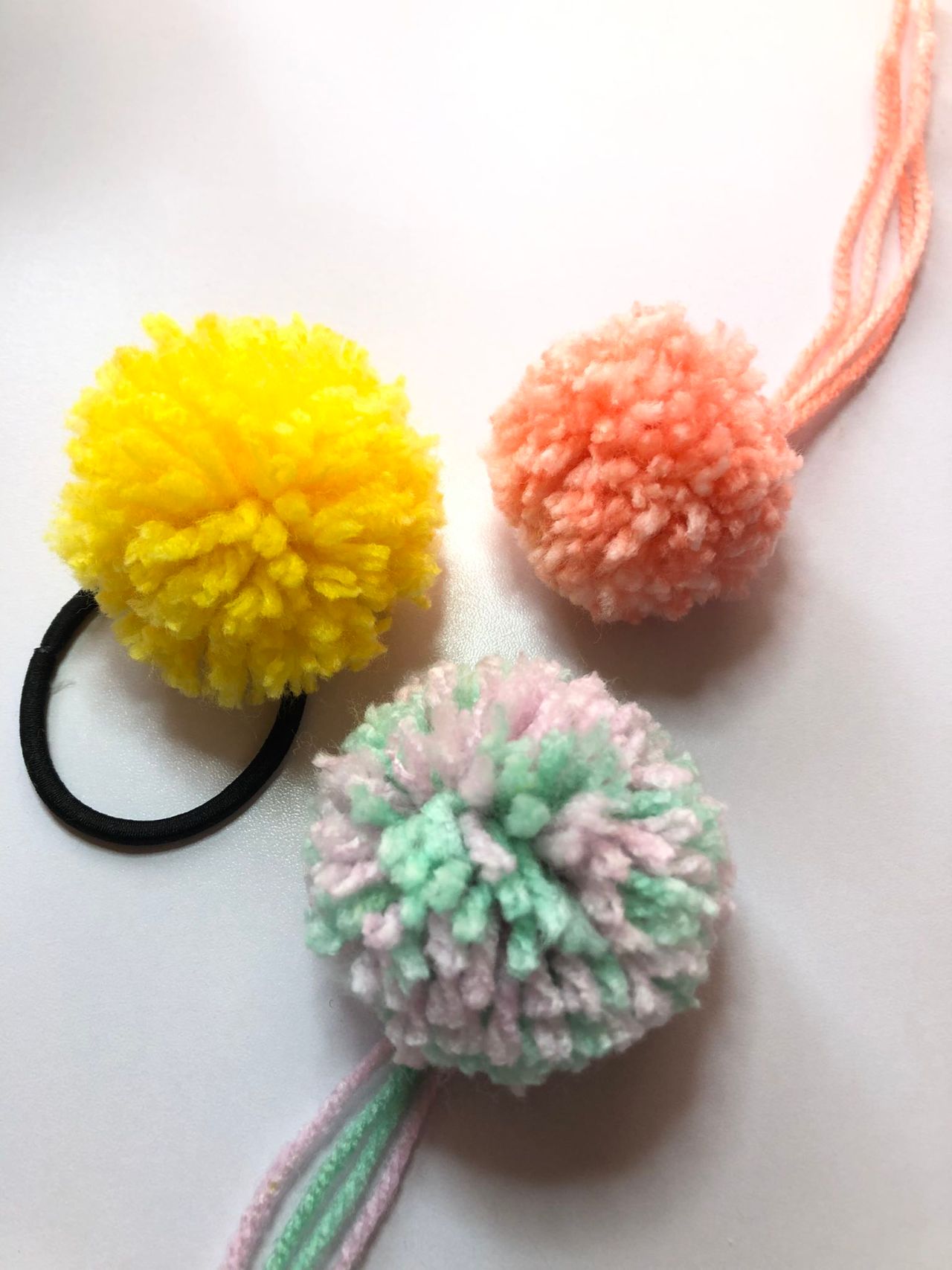 ヘアゴムに小さいのを色違いで2つつけても可愛いですね!