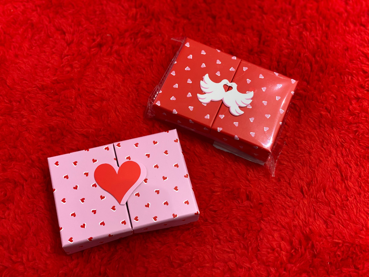 デザインは王道のCUTEなハートデザインとハトさんがKISSをしているデザインの2アソート!