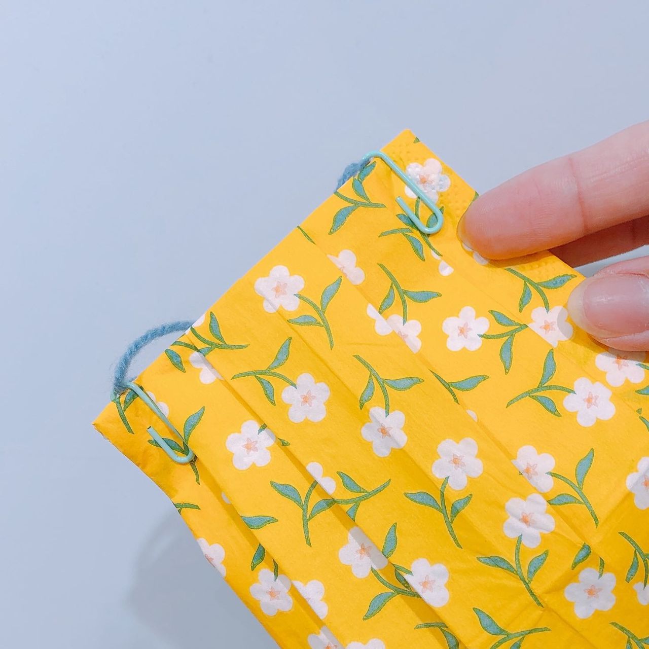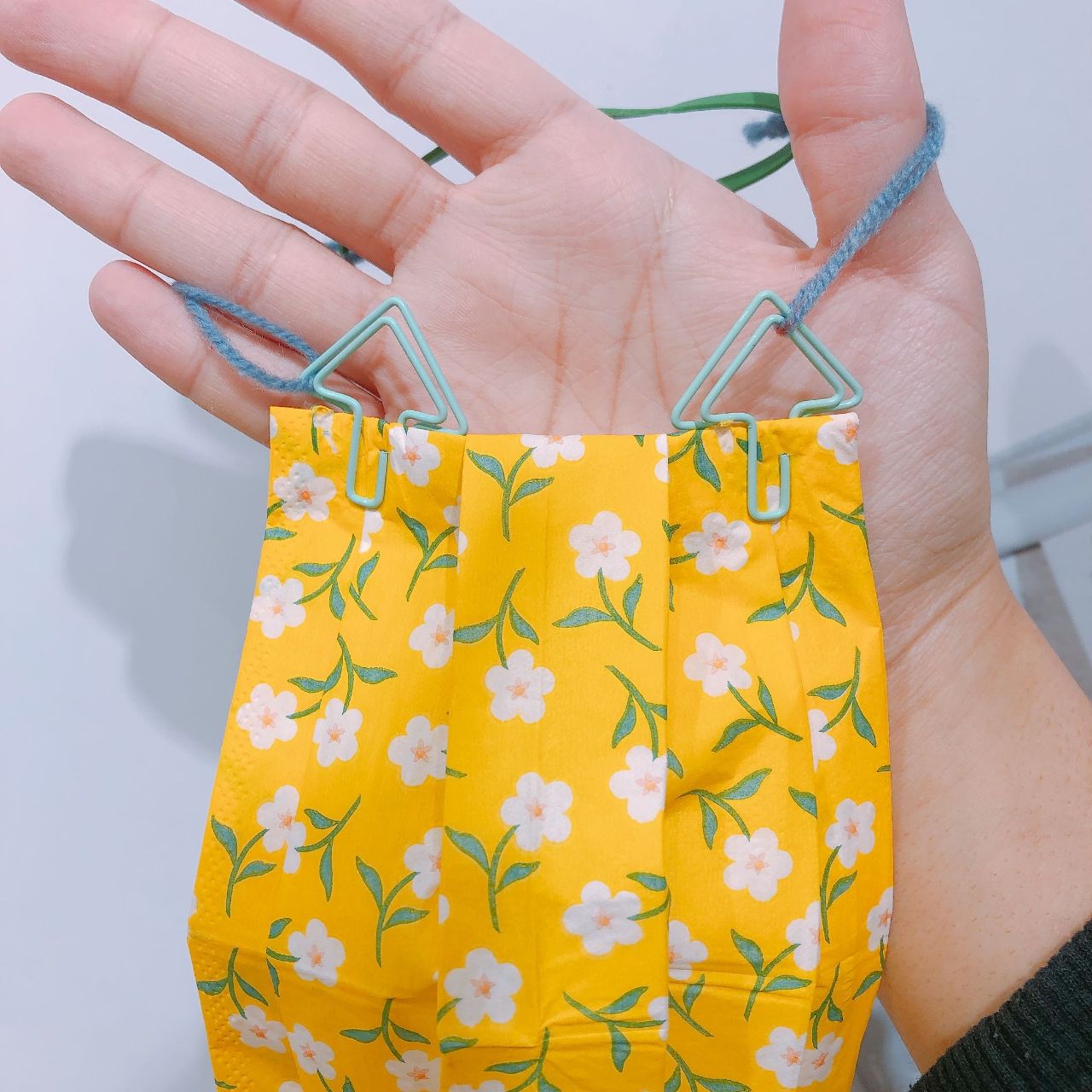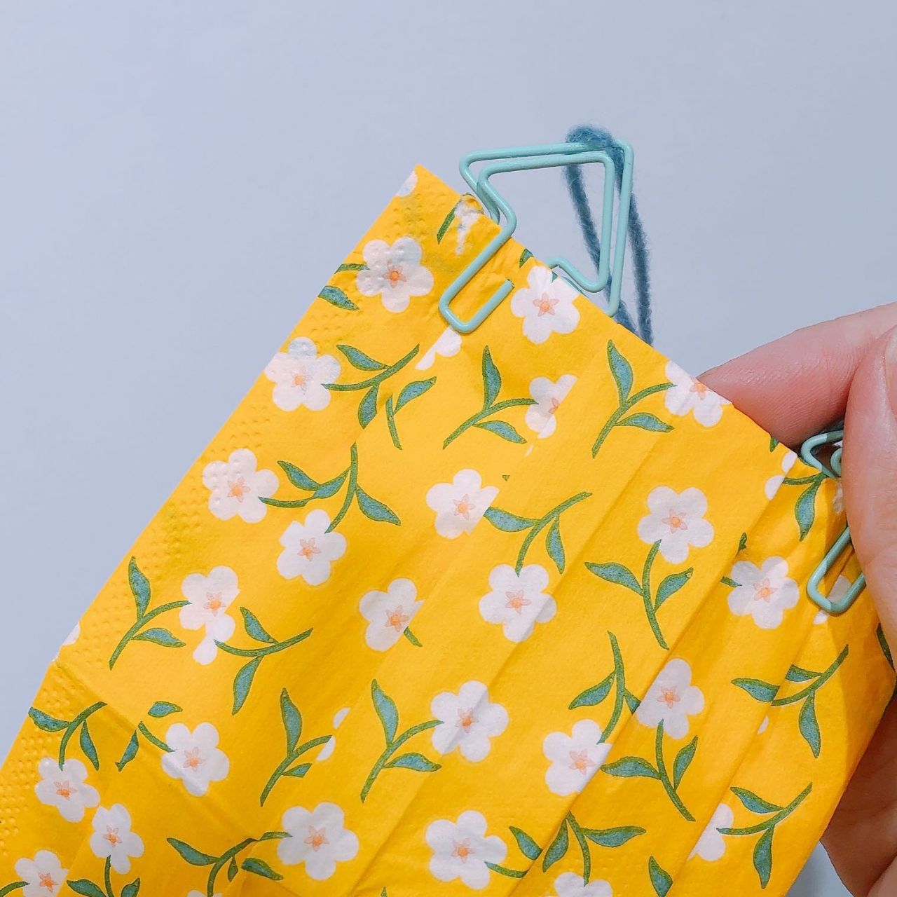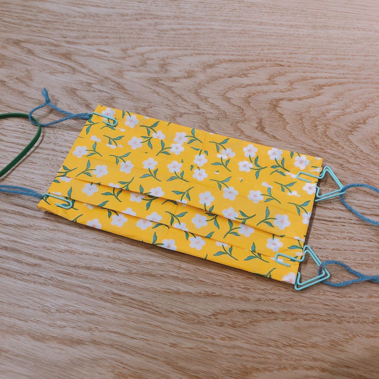 ◎ペーパーナプキンで折ったマスク(紐をつける前の状態) ※作り方は こちら