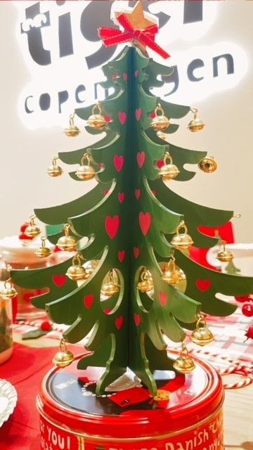 ハート柄が付いた組み立て式のツリーで高さ28cm。
