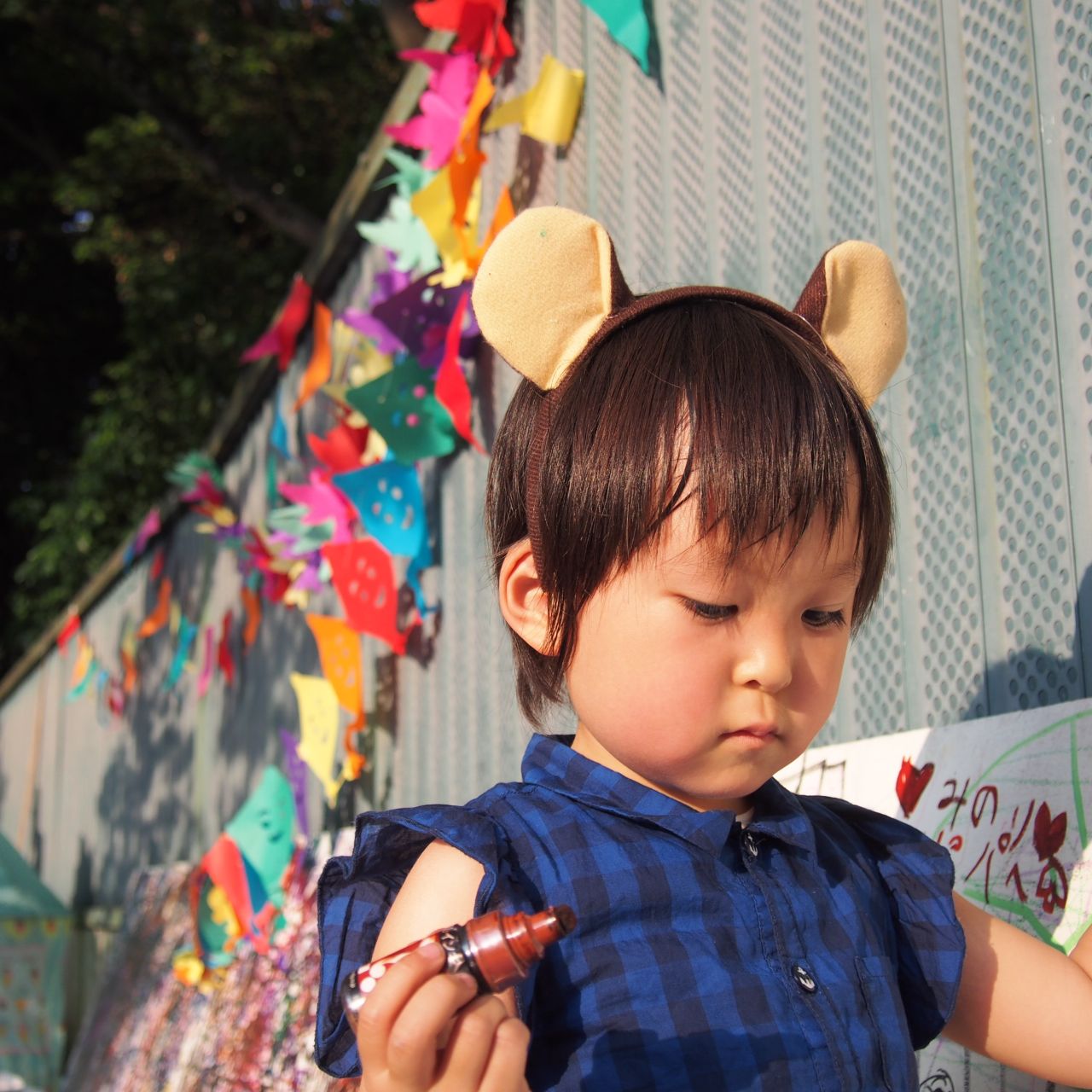 動物の耳カチューシャをつけながらお絵かき。