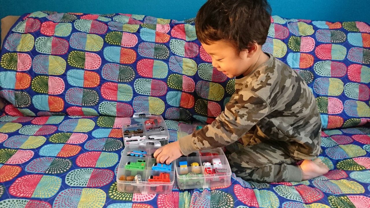 このボックスは、そんなミニカーや電車のおもちゃにぴったり合うんです!