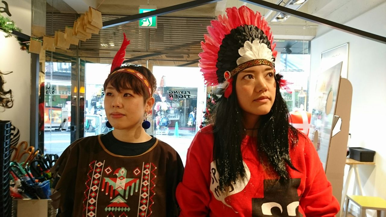 新商品でインディアンになりきってみたら、思いのほかイケメン風になったわたしとかわいいMさんです。