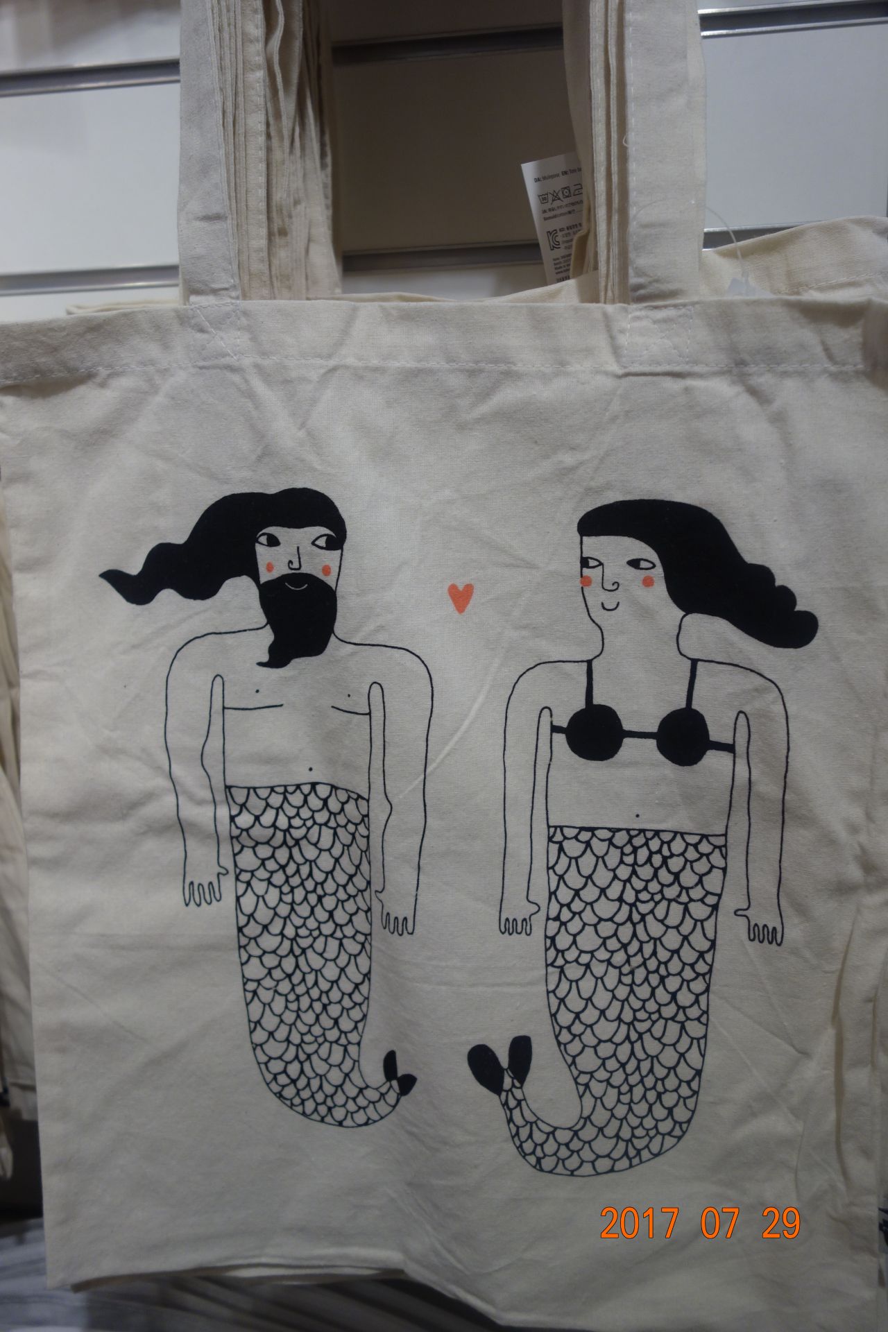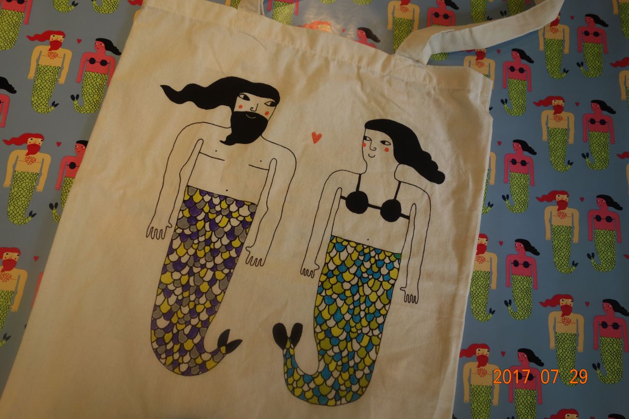 今月のニューデザイン、マーメイドのエコバッグをカラフルに塗りましょう~!