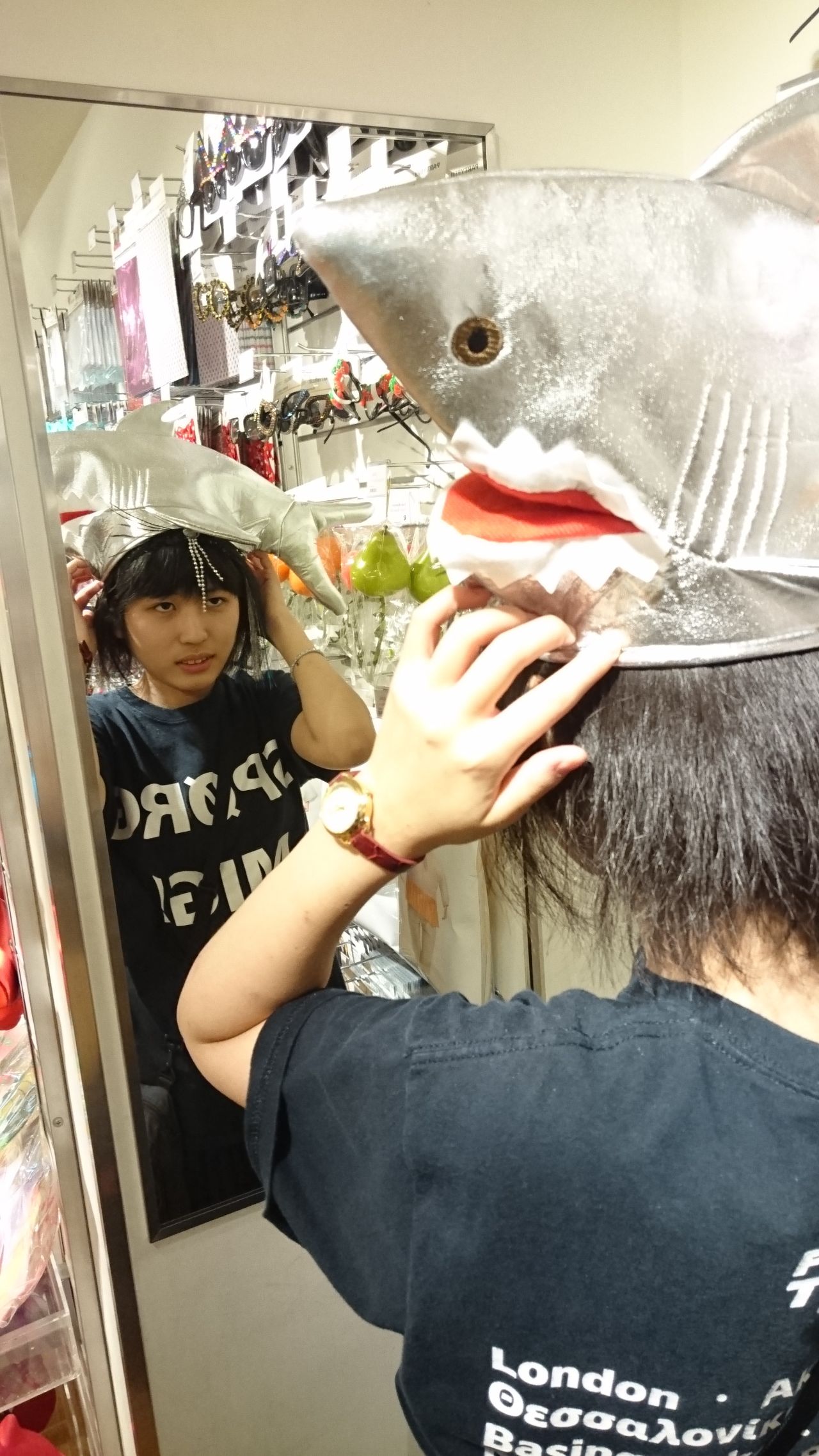 スタッフMさん、サメハットがお似合いです