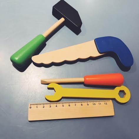 のこぎりに金づち、ペンチ、マイナスドライバー、ものさし!