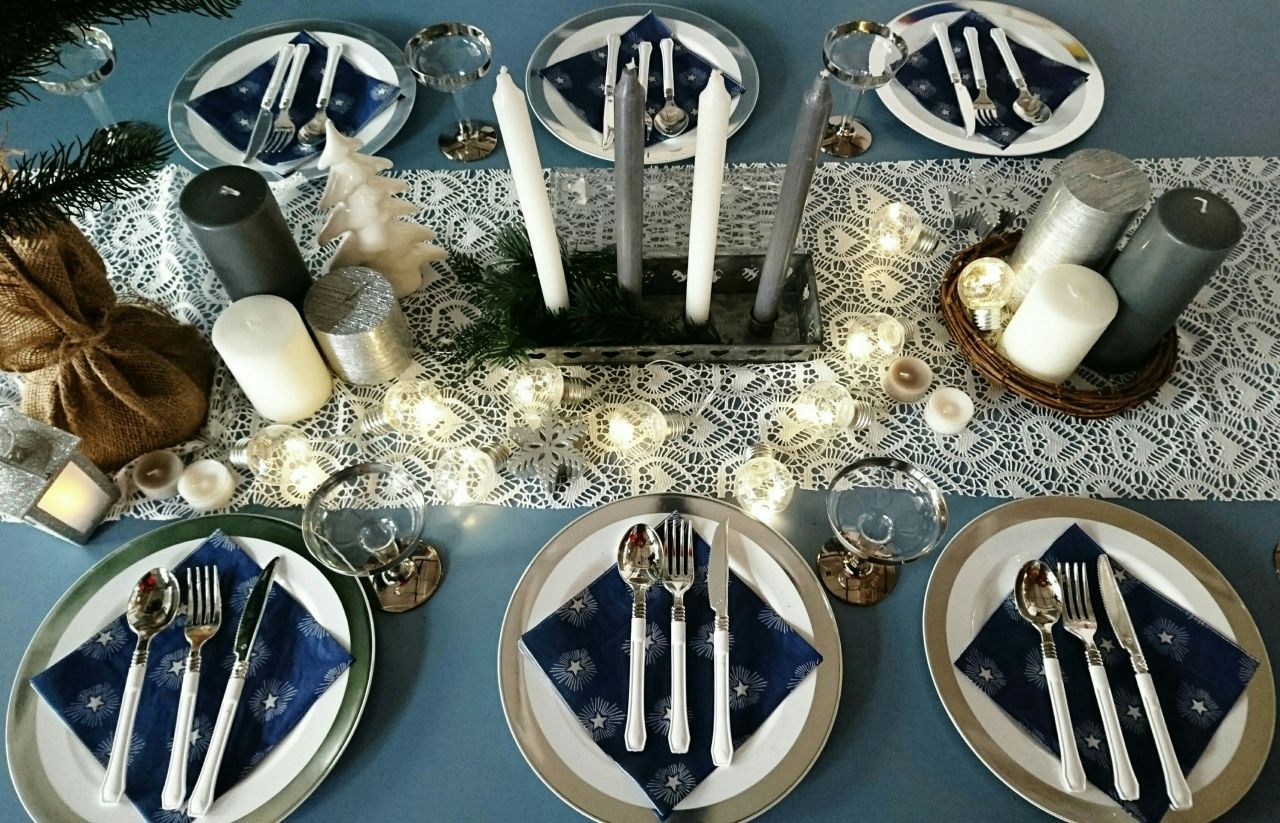 Xmasの定番カラーはあえて使わず、グレーとホワイト、ネイビーのやさしいカラーのみで。