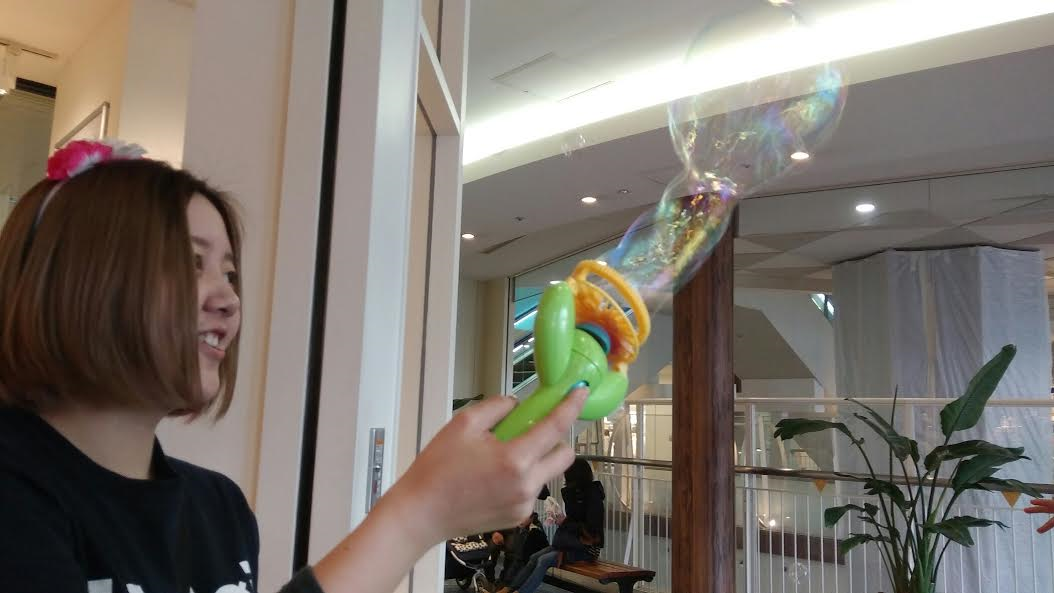 しかも内側でプロペラが回っていて、シャボン玉を飛ばしてくれるので