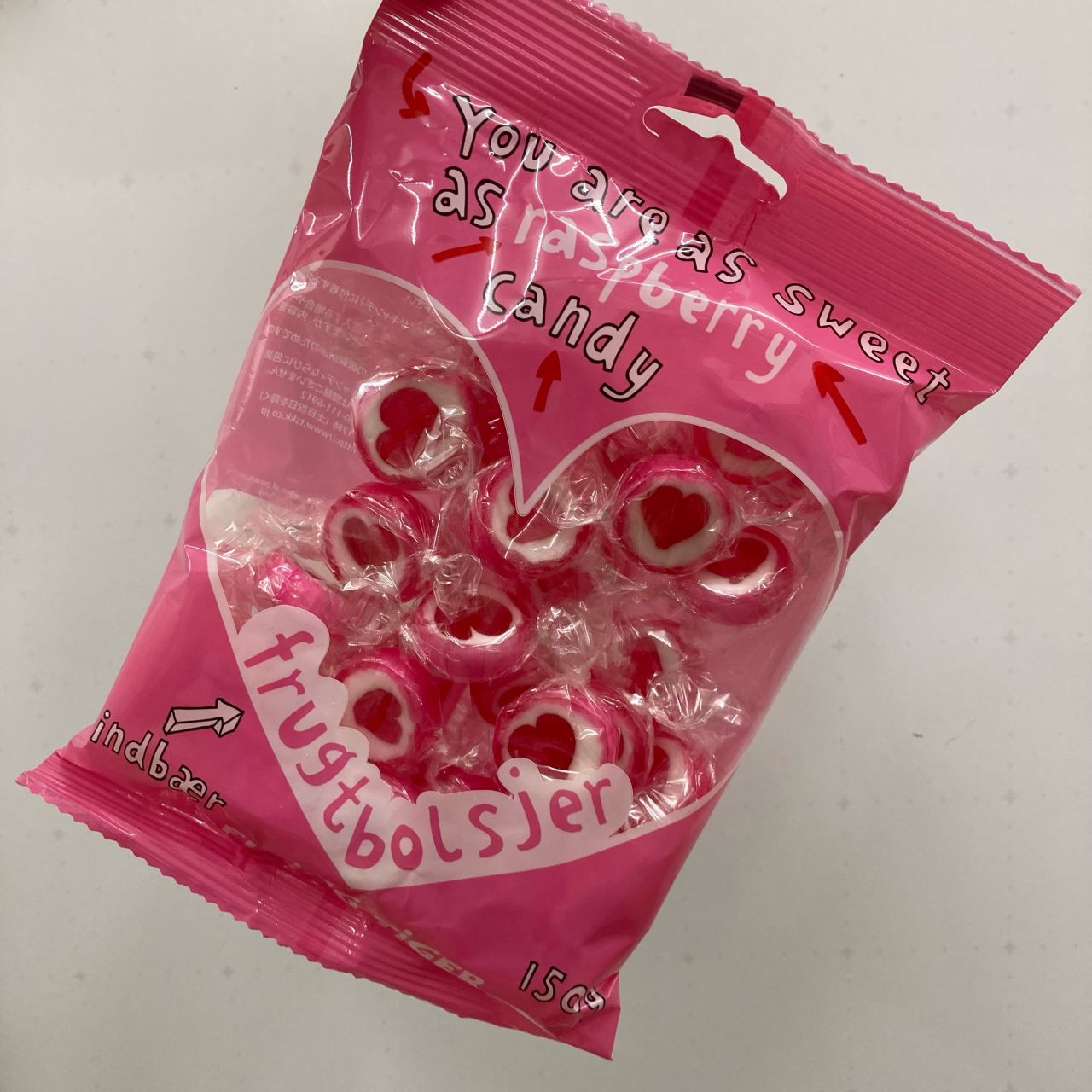 パッケージのハート、飴に印刷された赤いハートに、愛の詰まったラズベリー味♥♡