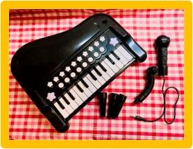 鍵盤の上にボタンが付いていて色んな音を楽しむことができます!