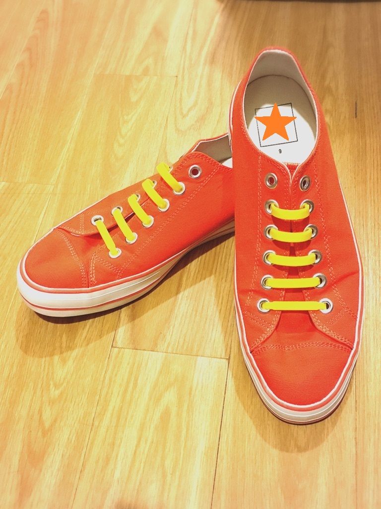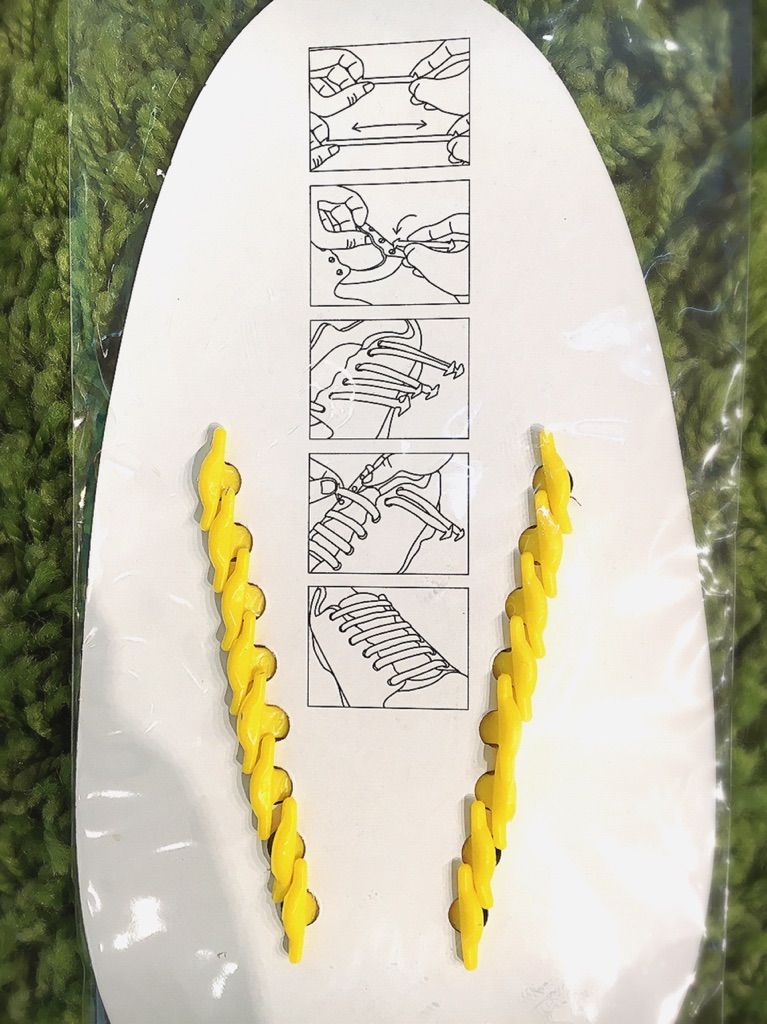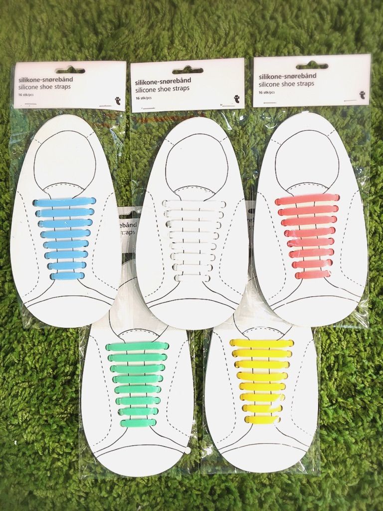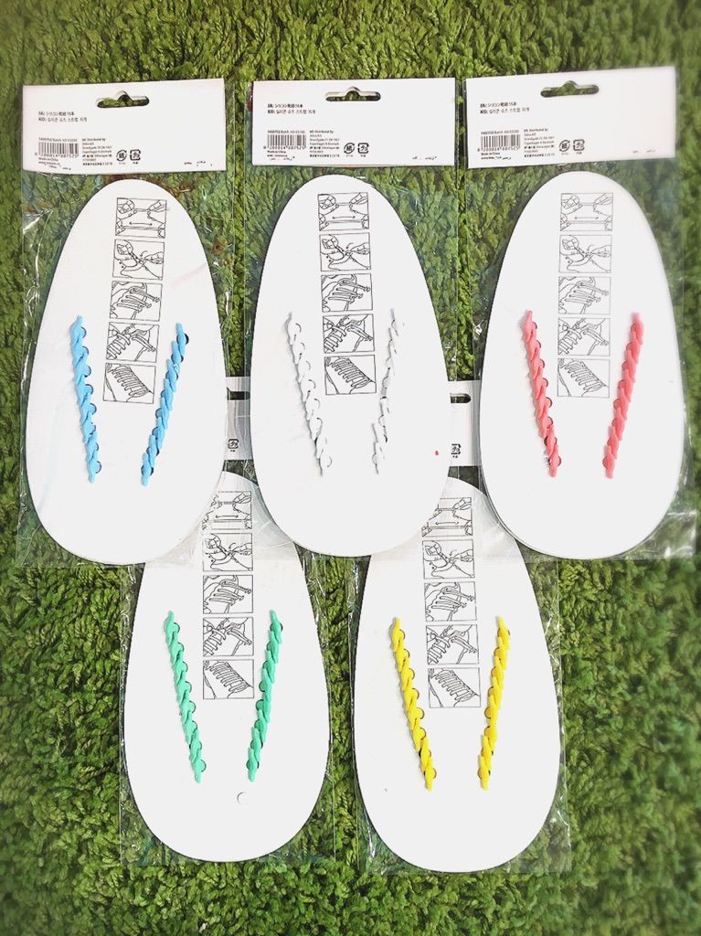 シューズの穴に、シリコン製の靴ひもを通していくだけです♪