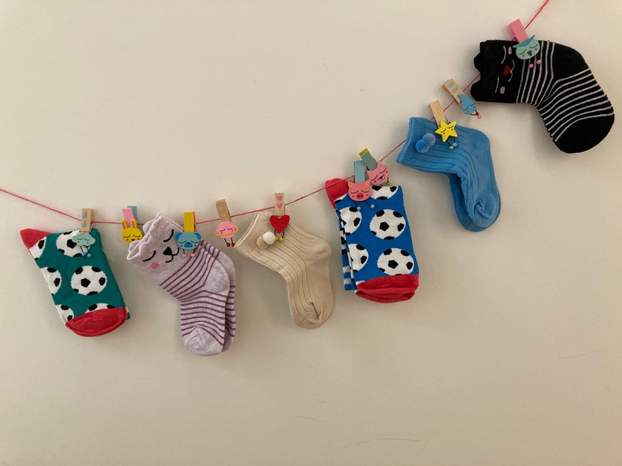 クリップにおうちにある紐を通して靴下をはさむと~~~