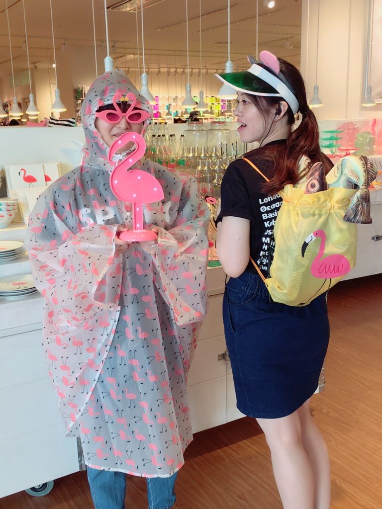 かわいいフラミンゴが全面にプリントされたレインポンチョ❤