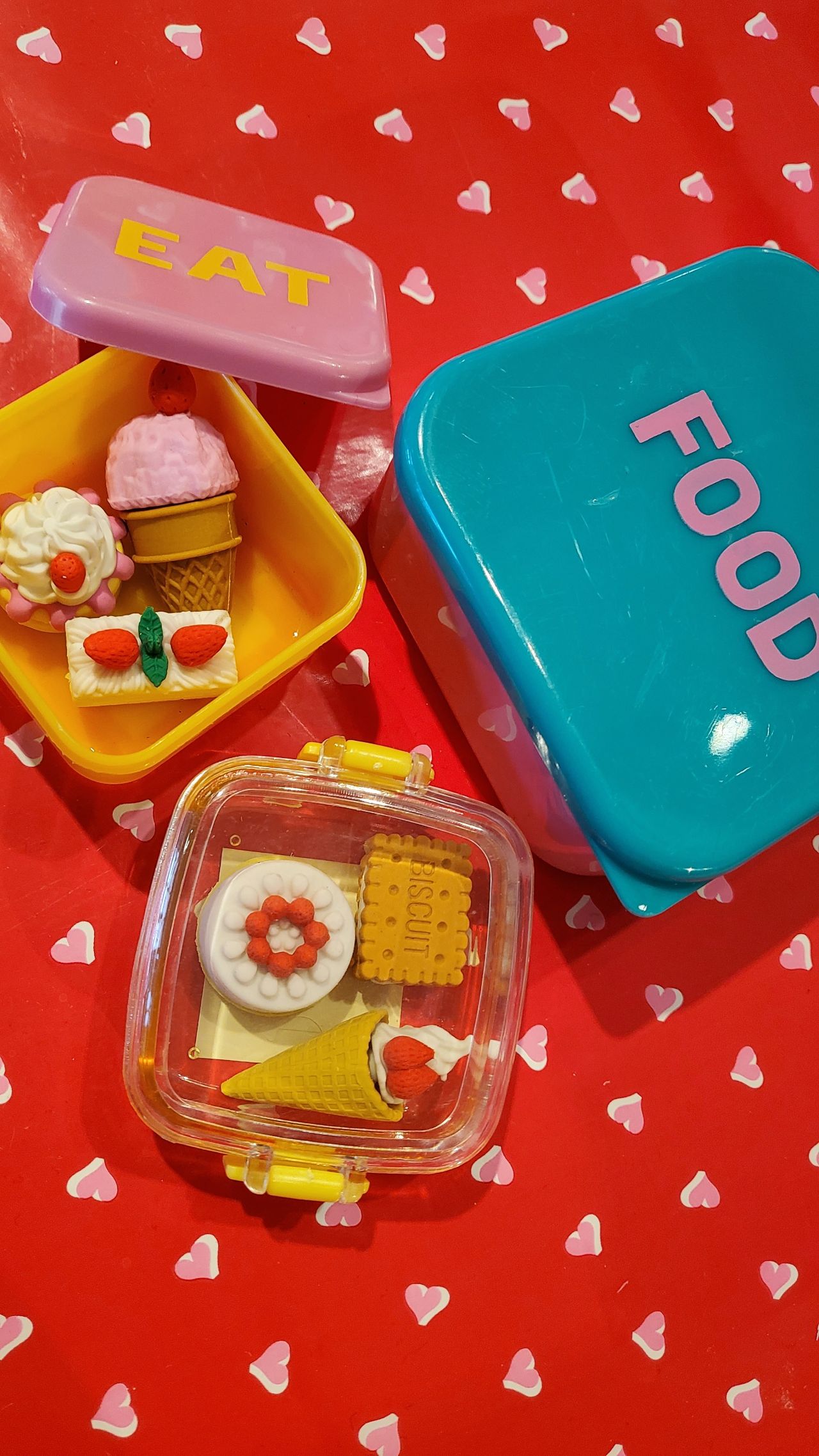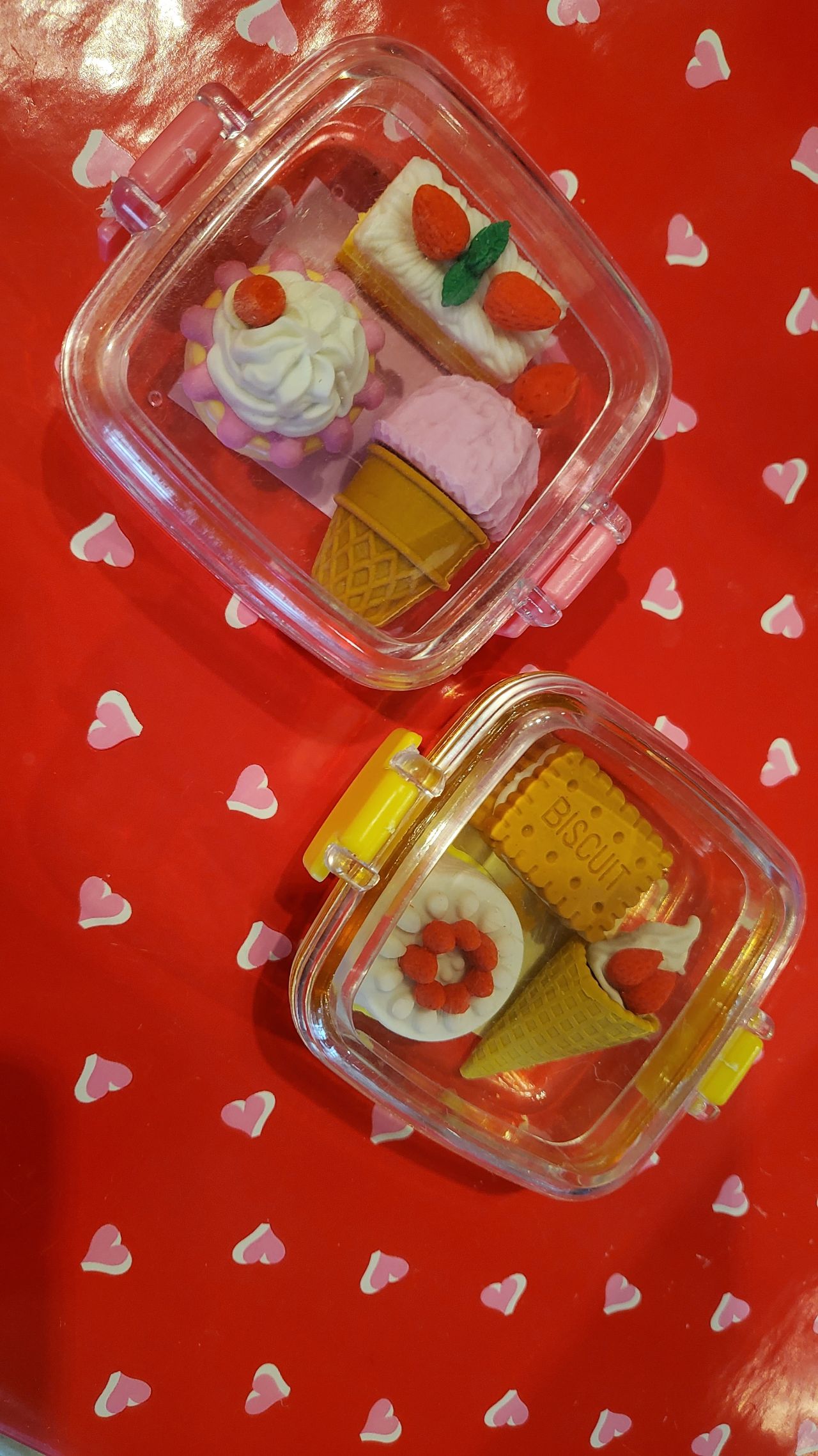 この消しゴム、透明のミニランチボックスに入って販売されていますがバレンタイン仕様に。