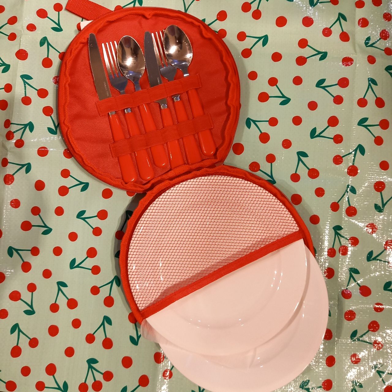 プラスチックのプレート、スプーン、フォーク、ナイフが2つずつセットで入っています!