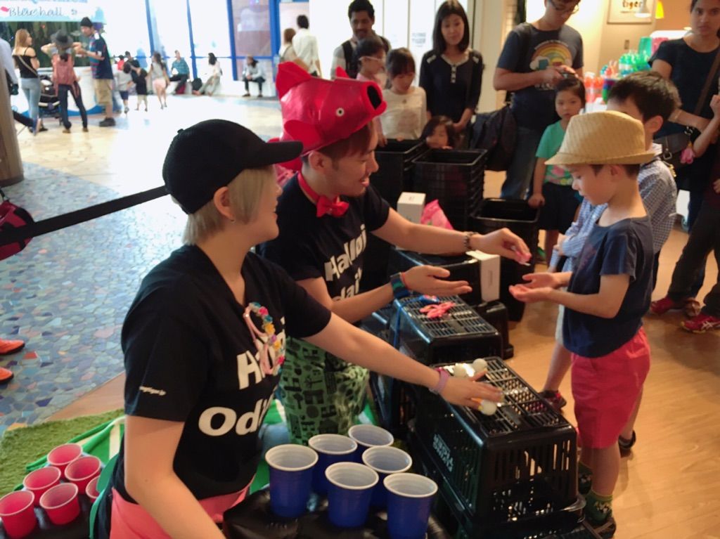 30秒間に、ピンポン玉を3コ以上入れることが出来たらアメちゃんゲット❤