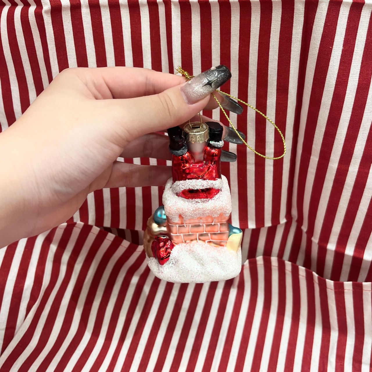 サンタさんが煙突に入り込んでいるオーナメント