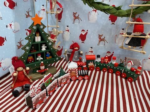 先頭車両にいるジンジャーブレッドマンが、車掌さんのようにも見えますね♪