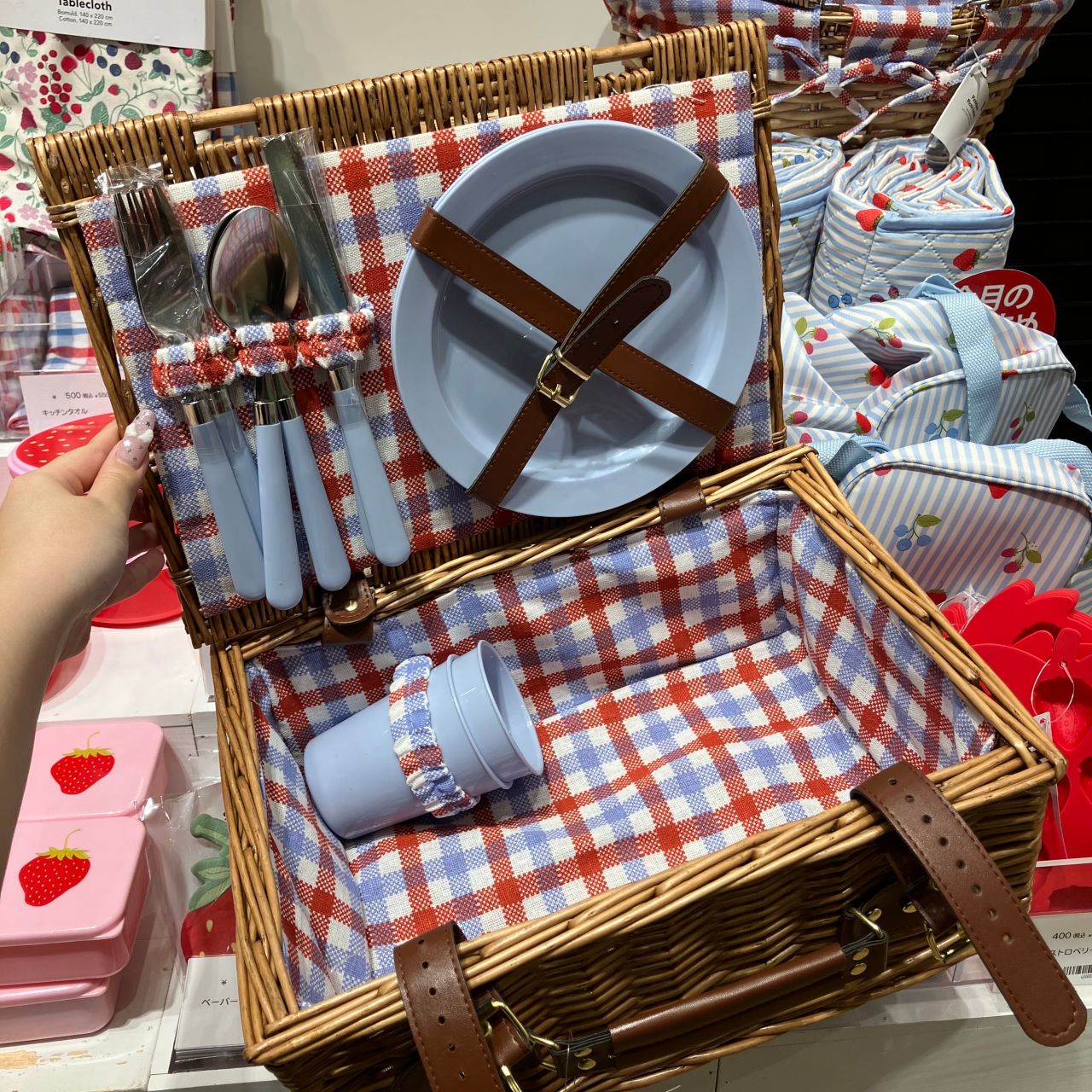 バスケットの中にはお皿、カトラリー、コップが2つずつ入っていて、
